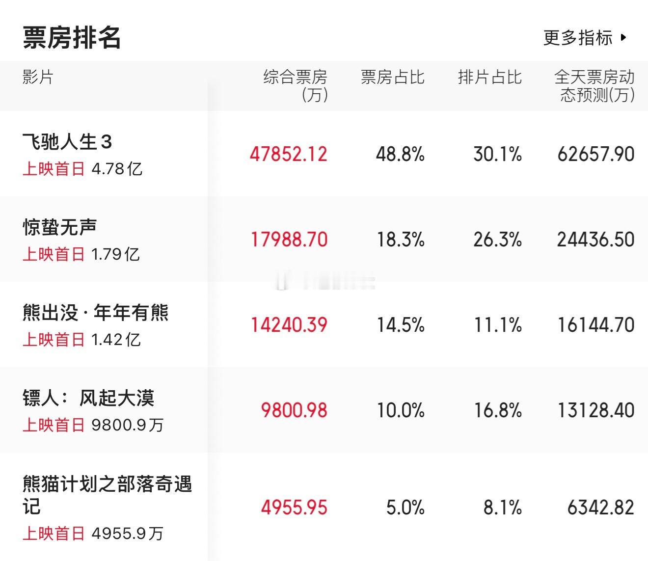 大年初一票房,飞驰人生3票房4.7亿,惊蛰无声1.79亿,熊出没1.42亿,镖人