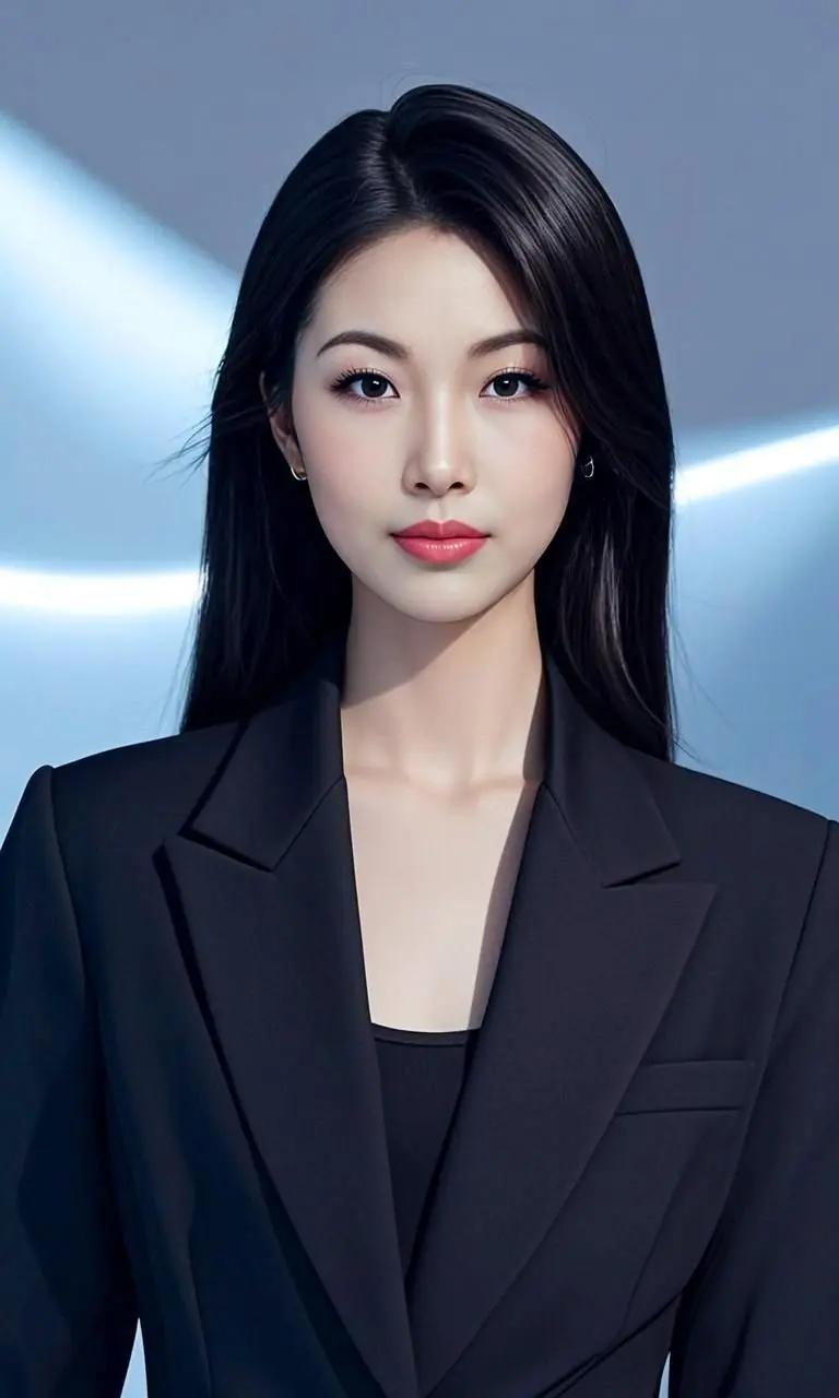 职场女强人,自信满满,黑色西装搭配红唇,气场全开!