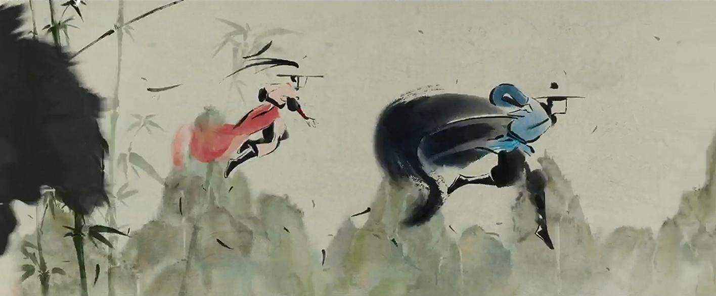 影片对梦境世界的展现新鲜有趣,相当带感。各种设定让人应接不暇,比如穿越入他人梦境时身份完全随机,有机会成为大佬,也许只是化身路人NPC,甚至有可能穿到广告牌里的二维人物身上。由于不同梦境的挤压,梦中的空间时常发生错位,程序不稳的同时还有做梦者意志的加持,枪战时子弹可能突然变成五彩缤纷的水果与糖块,看似不起眼的服务生也可操控刀叉万箭齐发!反派利用系统漏洞控制和叠加所有人的梦境时,画面更加令人眼花缭乱——男女主不断穿梭于持续倒塌、变形、崩坏的无数梦空间之中,从高空跃入深海,由赛博朋克宇宙切成水墨风动画世界,从沙漠探险之旅穿越到像素世界或黏土动画里……对丰富多样的梦境视觉呈现着实天马行空、汪洋恣肆,宛如一场沉浸感十足的视听盛宴。