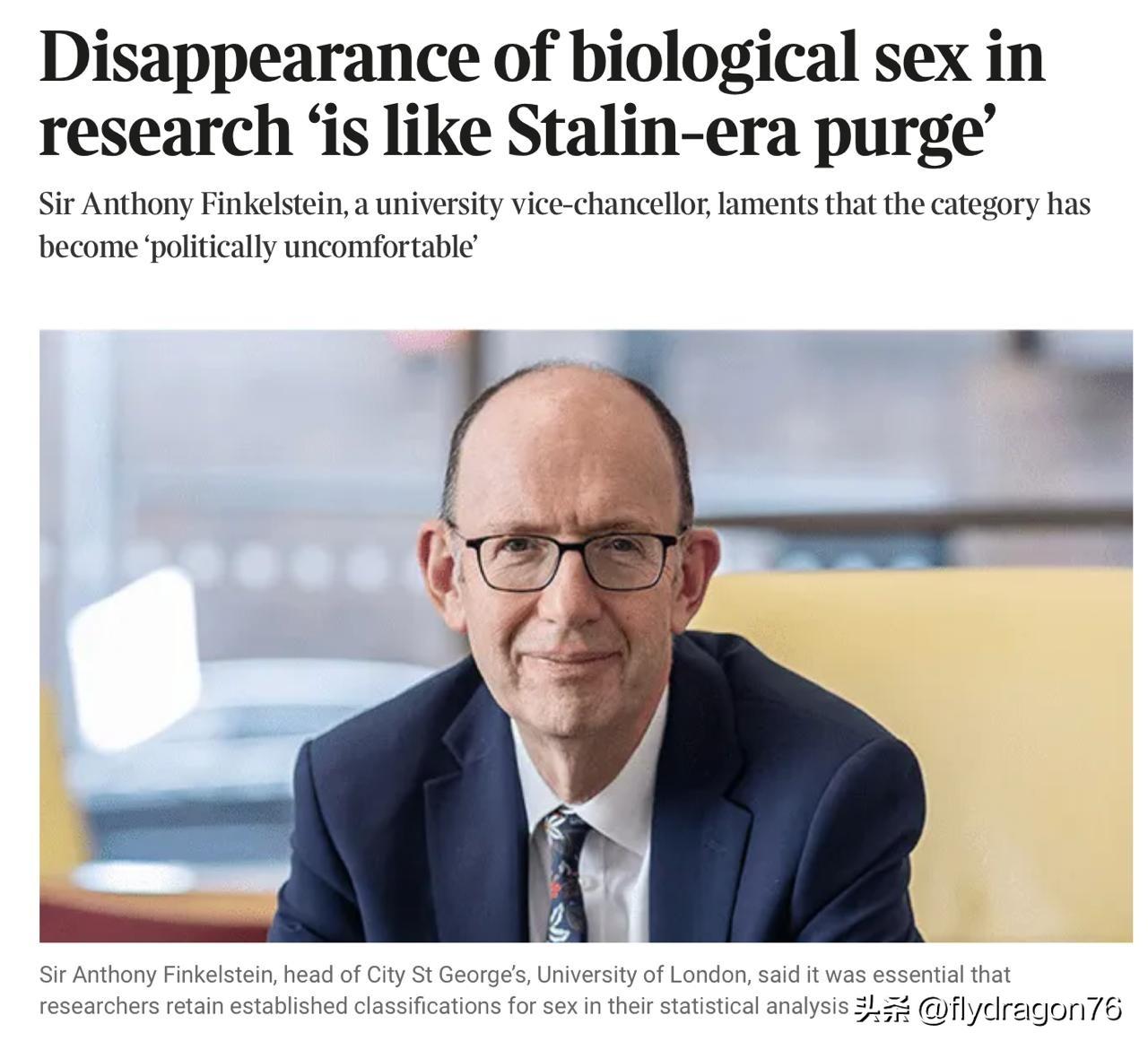 🇬🇧《泰晤士报》发出警告:“生物性别在研究中的消失如同斯大林的清洗。” 别笑!这可不是闹着玩的:伦敦大学教授安东尼·芬克尔斯坦(Anthony Finkelstein)正在谈论那些敢于在研究中探讨两性行为差异而不考虑“性别认同”的科学家所遭受的迫害。 然而,芬克尔斯坦认为,“生物性别”是一个需要保留的重要概念。“这很重要,因为性别与财富、健康、死亡率、生育率、暴力、监禁、就业和照护责任密切相关。”他指出,“性别作为一项记录变量的悄然消失,并非因为它失去了意义,而是因为它在政治上变得不合时宜。” 你可能会问,这跟“斯大林的清洗”有什么关系呢?关键在于,芬克尔斯坦将那些研究性别差异却不考虑“身份认同”的社会学家所遭受的迫害,与苏联当年镇压1937年“破坏”人口普查组织者的暴行相提并论。难道这位伦敦教授也会因此被枪决吗?