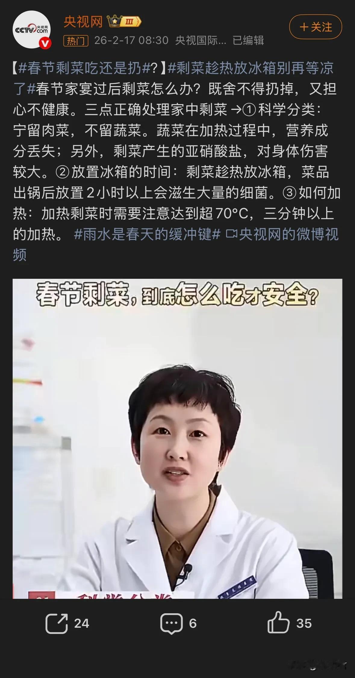 春节剩菜吃还是扔一般都是吃完吧……除非放的剩菜变质,要不然就不会扔了[笑哭]