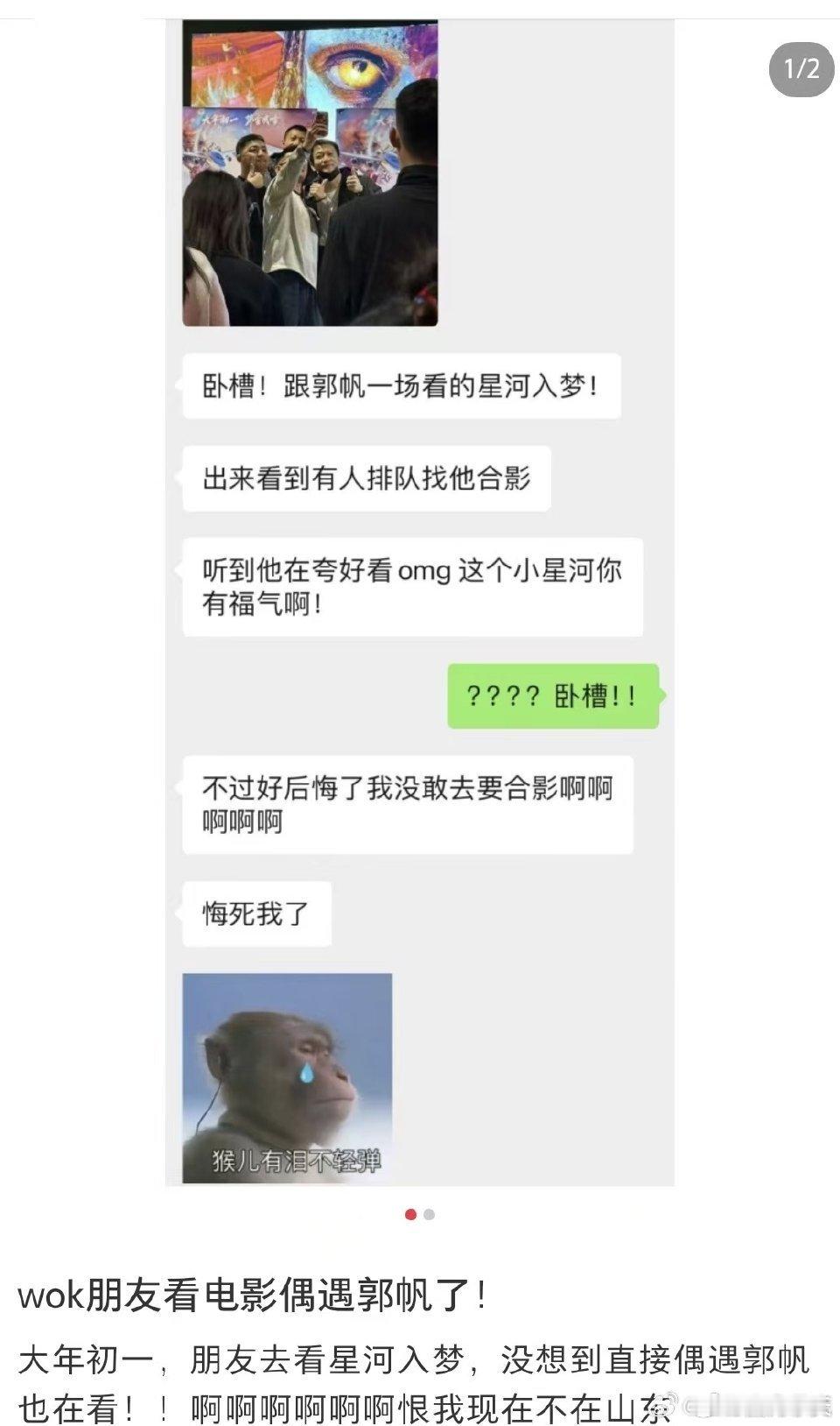 看星河入梦偶遇郭帆救命这是什么神仙运气!网友看《星河入梦》偶遇郭帆,双厨狂喜直接拉满!从《流浪地球》到《星河入梦》,中国科幻人互相欣赏、一起成长,这才是最棒的氛围,太骄傲了!