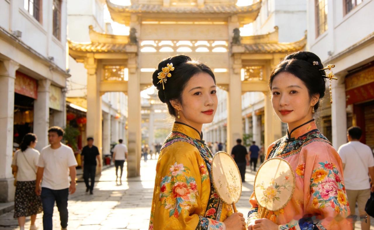 牌坊里的汉服女郎 潮州青瓦叠着岁月 牌坊把时光拉得很长 两位姑娘提着裙摆走过 衣袂如云,轻拂古巷 风掠过雕花的檐角 把千年的温柔吹回身旁 路人往来,烟火寻常 唯有这一抹汉家风韵 静静惊艳了整条老街