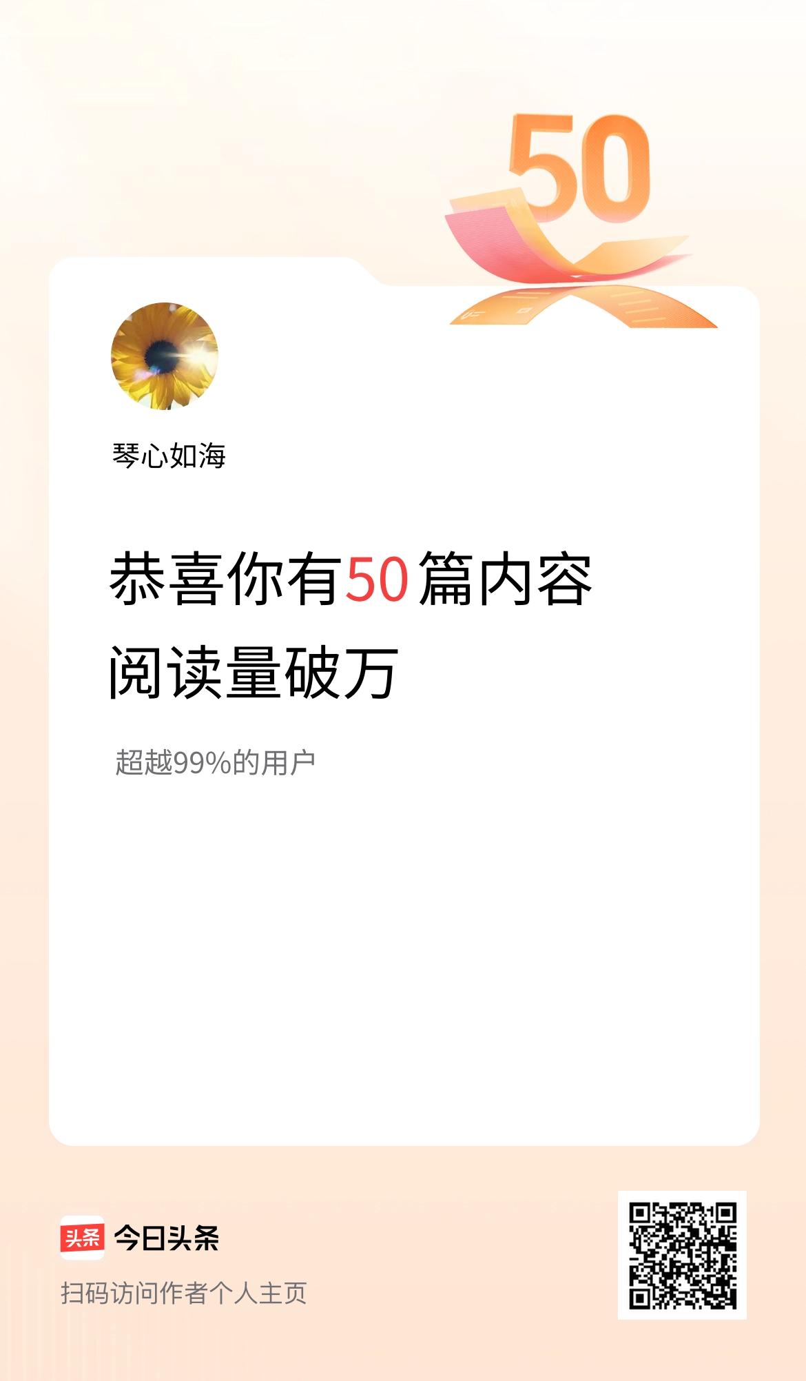 我在头条有50篇内容阅读破万了!