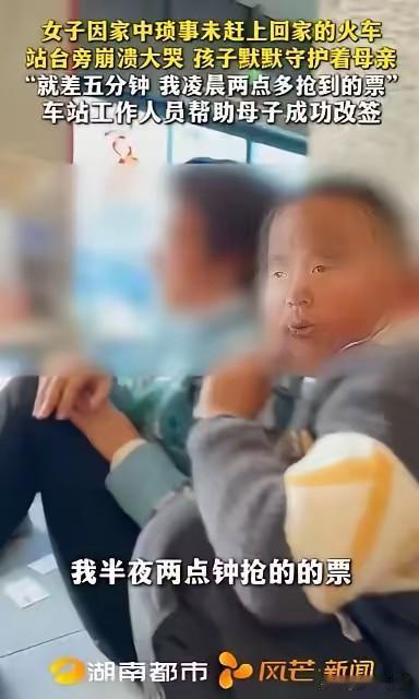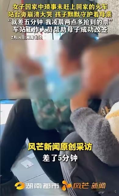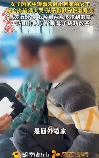 湖南长沙,女子凌晨2点半抢到票,出发前,丈夫却要她洗碗,扫地,等她干完家务活,才让她带着孩子回娘家,最终差了5分钟,没赶上火车,当她看着火车开走的那一刻,她崩溃痛哭,想到明年还要和这样的丈夫过,她更是绝望了,这时,站台的工作人员走了过来,当他们了解女子的困境,决定帮女子一把。 春运的车票有多珍贵,错过时的心痛就有多真切。在湖南长沙,一位年轻母亲为了带上孩子回一趟娘家,熬过最深的夜抢到一张来之不易的车票, 却在出发前被一连串琐事困住脚步,最终眼睁睁看着列车驶离站台,在寒风与人群中崩溃大哭,这一幕让无数人看得心头一紧。 为了这趟回娘家的行程,女子提前很久就开始做准备,春运期间车票紧张,热门时段的车票几乎是秒空,她不想错过一年里难得与亲人见面的机会,特意调好闹钟,在凌晨两点半准时守在购票软件前。 夜色正浓,大多数人还沉浸在睡梦中,她强忍着困意,一遍又一遍刷新页面,手指不敢有丝毫松懈,在漫长的等待与紧张的操作后,终于成功抢到车票。 看到订单显示购票成功的那一刻,她长长松了一口气,心里被即将见到亲人的喜悦填满,连孩子的衣物、零食、给娘家准备的小礼物都一一细心打包,行李箱收拾得整整齐齐,只等着出发时间到来。 出发当天,她早早起床给孩子收拾妥当,自己也换好衣服,把行李搬到门口,随时准备出发。 可就在即将踏出家门的那一刻,却被要求必须先完成家里的家务,只有把碗池里堆积的餐具全部清洗干净、把房间地面彻底清扫完毕,才能动身前往车站。 她心里清楚,带着孩子赶路本身就比普通人更耗费时间,从家到车站还要预留出安检、候车的时间,一旦耽误就可能赶不上火车,可即便内心焦急万分,她也只能先放下手里的行李,转身投入到家务中。 她不敢放慢速度,水龙头哗哗作响,她快速擦拭、冲洗每一个碗碟,生怕多浪费一秒钟,擦完桌子又立刻拿起扫帚,仔细清扫地面的灰尘碎屑,全程紧绷着神经,耳朵时刻留意着时间,脑海里不断计算着剩余的赶路时间。 孩子安静地待在一旁,看着母亲匆忙的身影,也不敢过多打扰。等所有家务全部做完,她顾不上休息,一手牵着孩子,一手用力拎起沉重的行李,急匆匆往车站赶。 一路上她脚步不停,恨不得能立刻抵达站台,可时间不等人,等她带着孩子气喘吁吁赶到火车站,通过安检一路奔向检票口,再冲上站台时, 原本应该等候她的列车已经缓缓启动,车轮慢慢加速,一点点驶离视线,她仅仅迟到了五分钟。就是这短短的五分钟,打碎了她所有的期待与欢喜。 站在空旷的站台上,看着渐渐远去的列车,听着耳边呼啸而过的风声,女子再也撑不住,压抑已久的情绪瞬间爆发,抱着孩子崩溃痛哭。 她想起凌晨熬夜抢票的辛苦,想起对娘家亲人的思念,想起临行前被耽误的每一分每一秒,所有的委屈、无助、遗憾在这一刻全部涌上来,情绪彻底失控。 一想到这一年好不容易盼来的回家机会就这样落空,一想到未来还要继续面对这样的处境,她的心里充满了深深的绝望,站在原地止不住地流泪,连身边的孩子都被母亲的情绪感染,显得慌张又不安。 整个站台人来人往,大多是赶着回家团圆的旅客,女子的哭声很快引起了现场工作人员的注意。 几位工作人员连忙放下手头工作,快步走到她身边,轻轻安抚她的情绪,耐心倾听她讲述从抢票、做家务到耽误行程的全部经过。 在完整了解到她的艰难处境与错过列车的原因后,工作人员没有丝毫犹豫,当场商量对策,决定尽最大努力帮助这位带着孩子的母亲,为她协调后续的出行方案,希望能让她尽快踏上回娘家的路。 从凌晨的满怀期待,到临行前的焦急匆忙,再到错过列车的崩溃绝望,最后迎来陌生人的温暖援手,一段普通的回家之路,充满了曲折与起伏,也藏着最真实的生活情绪。 对此,你们有什么看法,欢迎评论留言~