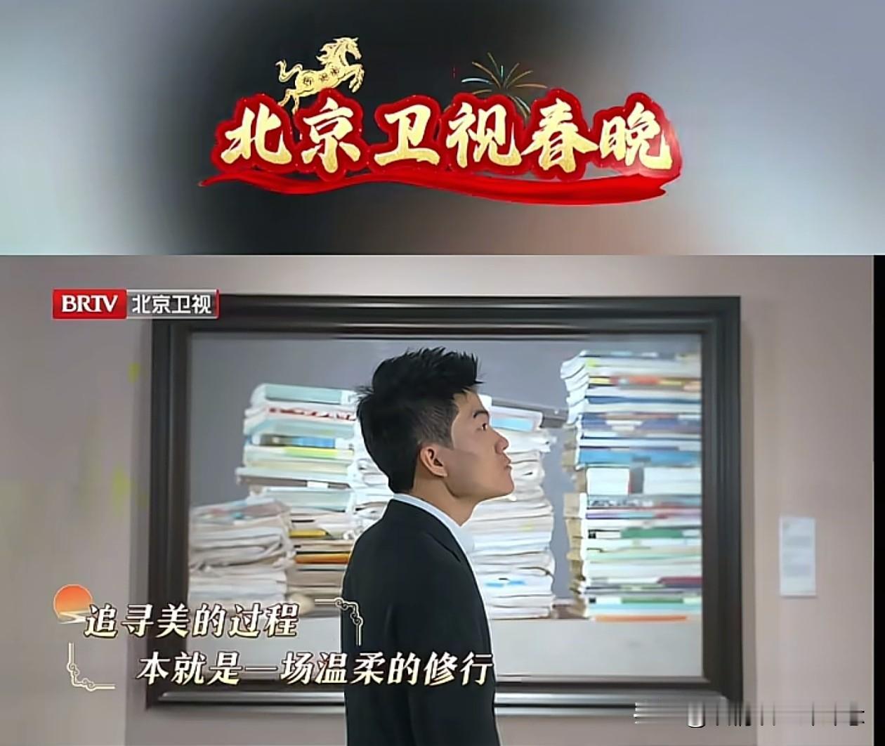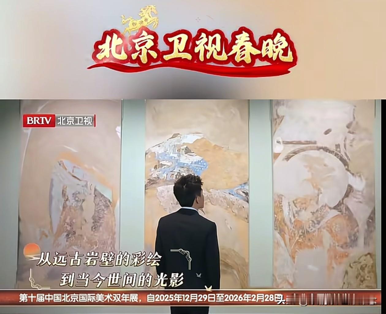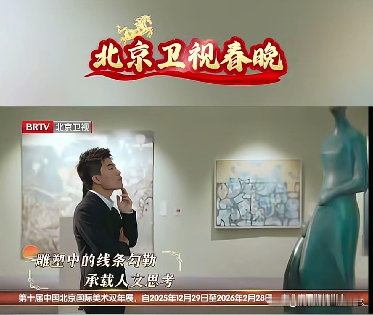 等了3个多小时,终于等到宇辉在北京卫视春晚的节目——短片《看美展过大年》,遗憾的是,这个短片真的时间太短,只有一分钟多点,还没看够就结束了。 镜头里,他一身黑西装,在一幅幅画作前驻足、凝视,像在和千年的艺术对话。 “追寻美,是刻在人类骨子里的本能”,“我们以目光为尺,丈量世间所有细碎与磅礴的美好”,他的声音一出来,就有一种温润而有力量的感觉。 时间虽然不长,却藏不住他的气质与底蕴,他把艺术的温度,揉进了每一句旁白里。 好的东西,也许并不需要太长。 一眼入心,一听动容,就已足够。 期待下次,能够再看到不一样的他!