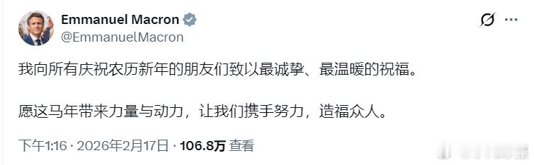 大年初一马克龙中文发帖:我向所有庆祝农历新年的朋友们致以最诚挚、最温暖的祝福。