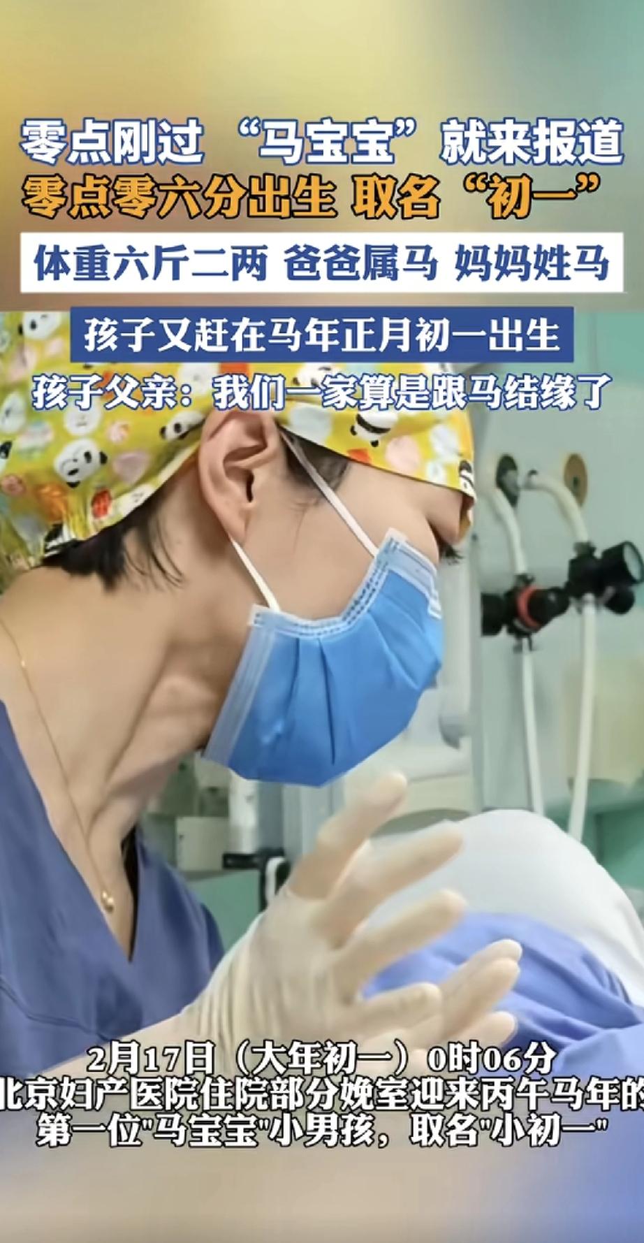 大年初一零点刚过,北京妇产医院传来喜讯:一个六斤二两的男宝宝踩着马年钟声出生了,时间是零点零六分。 更有意思的是,爸爸属马,妈妈姓马,孩子又出生在马年正月初一。一家人商量后,给孩子取了个特别有纪念意义的小名——“小初一”。爸爸笑着说:“我们一家算是跟马结缘了。” 这缘分确实巧。从除夕守岁到大年初一迎新,“小初一”带着满满的福气来到人间。新生命、新岁首、新希望——这个名字里,藏着全家人对未来的美好期盼,也成了这个春节最温暖的礼物。