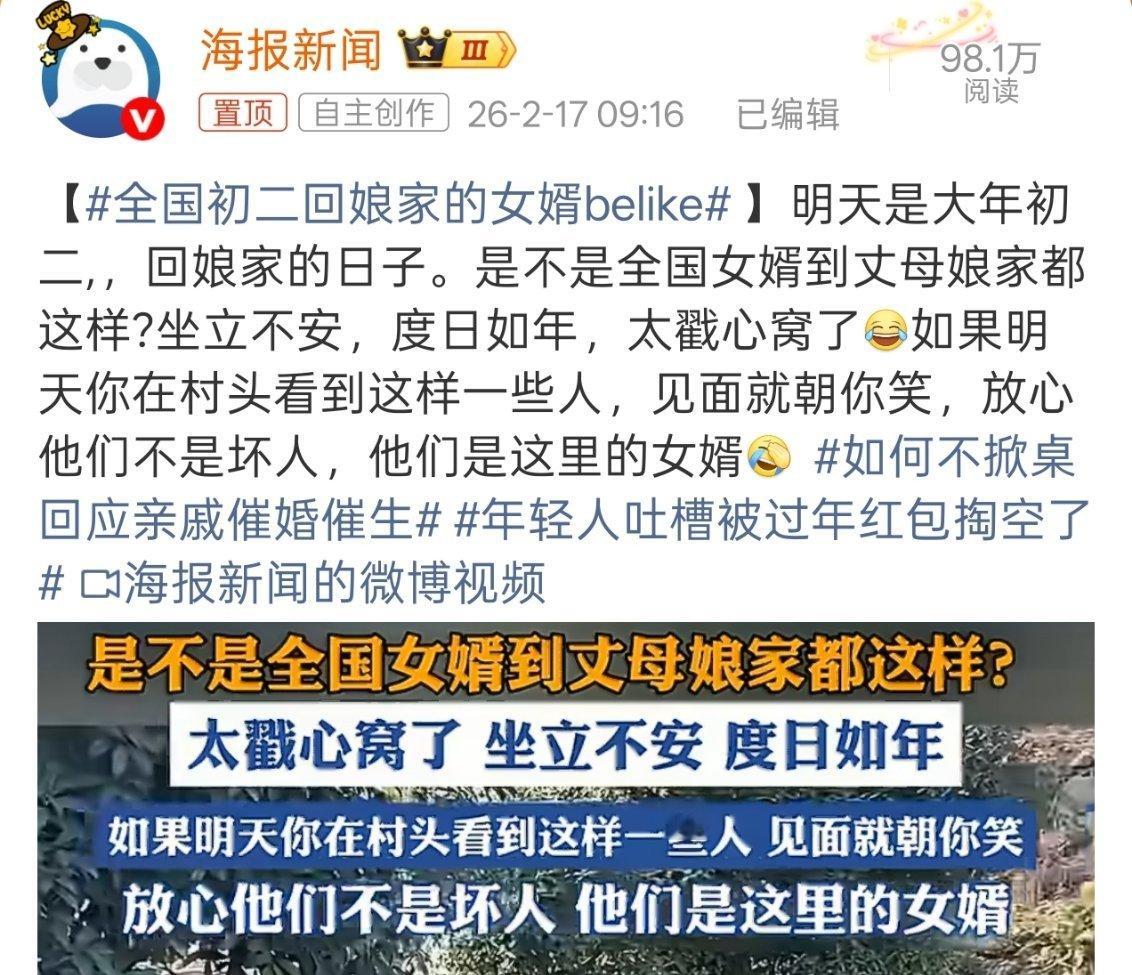 全国初二回娘家的女婿belike一年也就这一次,主动融入一下也没啥吧,这样自己尴尬,家里人也尴尬。