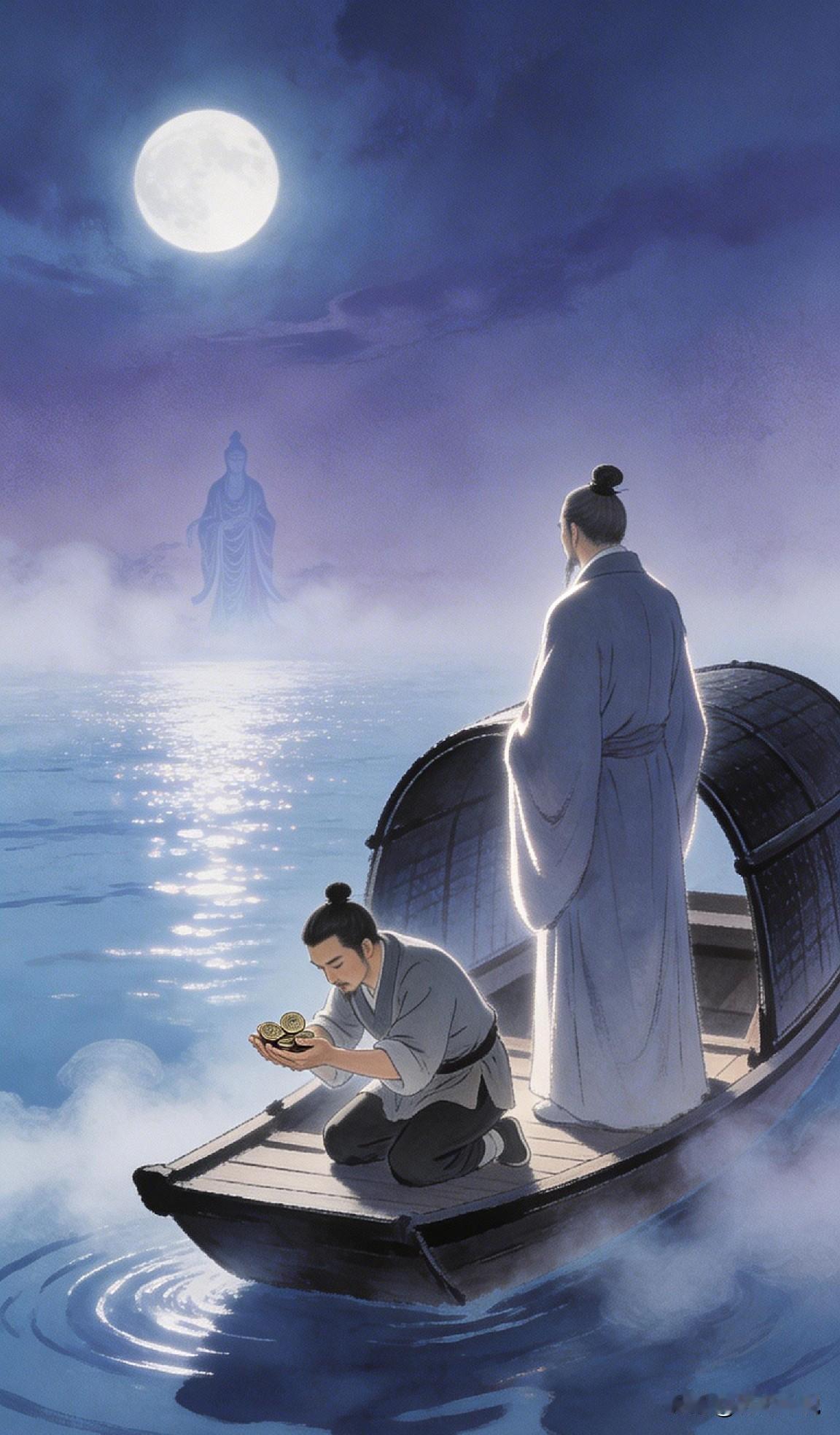 民间故事:老道士过江窥天机,船夫投江铜钱藏百年生存秘辛 编辑:纱娜 作者:纱娜 江河行船,自古便是拿性命搏生计的险事,老辈人代代传下不少敬畏天地的规矩。 一位云游四方的老道士,在渡江时便撞见一件怪事,让他当场看破了船夫平安半生的真相。 船行至江心,船夫停下手中船桨,神色恭敬地掏出一枚铜钱,轻轻抛入滚滚江水之中。 这一幕让老道十分疑惑,一趟一投,风雨无阻,背后藏着的绝不是简单的迷信。 创作声明:本文为基于史料的虚构创作或解读,部分细节为文学加工,请勿与现实绝对关联。本文所用素材源于历史记载或文献,部分图片非真实图像,仅用于叙事呈现,请知悉。 老道士鹤发童颜,深谙风水命理与江河禁忌,一眼便察觉其中门道。 他没有立刻发问,只是静静看着船夫熟练的动作,心中已然猜出几分缘由。 待到渡船安稳靠岸,道士才缓缓开口,询问船夫投钱的来历。 船夫性格憨厚,也不隐瞒,将祖上传下的规矩一五一十地道了出来。 原来这船夫一家三代摆渡,从爷爷那辈起,便立下死规矩。 每渡完一趟客人,必须往江心投一枚铜钱,名为“敬水神、买平安”。 铜钱虽小,价值微薄,却是对江河神灵的敬畏之心,也是给行船买一份心安。 江上天气变幻莫测,前一刻风平浪静,下一刻就可能巨浪滔天,容不得半分大意。 老道士听完,抚须轻叹,告诉船夫这规矩千万不能断,一旦停下必有祸事上门。 船夫当时并未完全放在心上,只觉得是道长危言耸听,依旧每日按规矩行事。 就这样平平安安过了十余年,船夫从未遇到过翻船、遇险之类的祸事。 岸边的人都羡慕他船技好、运气旺,只有他自己清楚,是老规矩护佑着全家。 可日子一久,身边的闲言碎语便多了起来。 有人笑他愚笨,一枚铜钱虽少,长年累月也是一笔不小的开销。 还有人说,如今江上风平浪静,根本不用再做这种无用的花费。 听得多了,船夫心里渐渐动摇,开始觉得这祖传的规矩,或许真的只是多余的形式。 终于在一天,船夫心一横,决定不再往江里投掷铜钱,想省下这笔小钱。 可就是这一天,江面骤然变天,狂风骤起,大浪一个接一个拍向小小的渡船。 船夫吓得魂飞魄散,拼命稳住船身,可船只在江中如同一片落叶,根本无法掌控。 生死关头,他猛然想起老道士的告诫,也想起了十几年从未间断的规矩。 他慌忙摸出一枚铜钱,用尽全力扔进江中,口中连连告罪。 神奇的是,铜钱落水不过片刻,江风竟慢慢减弱,浪涛也渐渐平息。 死里逃生的船夫瘫坐在船板上,浑身被冷汗浸透,再也不敢有半分侥幸。 从那以后,他比以往更加恭敬,投掷铜钱的规矩,再也没有间断过一天。 这件事很快在两岸村镇传为佳话,成了口口相传的民间故事。 大家都说,江河有灵,投钱不是破财,而是人对自然最该有的敬畏。 老道士看破的从不是什么神仙法术,而是人心与天地相处的道理。 靠水吃水的人,最不能丢的就是敬畏心,一旦失了恭敬,祸事便会找上门。 一枚铜钱,买的不是水神的庇佑,而是自己内心的踏实与本分。 世间所有的平安顺遂,都不是凭空而来,而是藏在日复一日的坚守与敬畏里。 这则民间故事听起来充满传奇色彩,却道尽了古人的生存智慧。 无论时代如何变化,心存敬畏、行有所止,永远是立身处世的根本。 那些看似不起眼的老规矩、老传统,往往都是前人用教训换来的经验。 读懂了它们,便读懂了人与自然、与生活最和谐的相处之道。 各位读者你们怎么看?欢迎在评论区分享你们的独特见解与想法讨论。