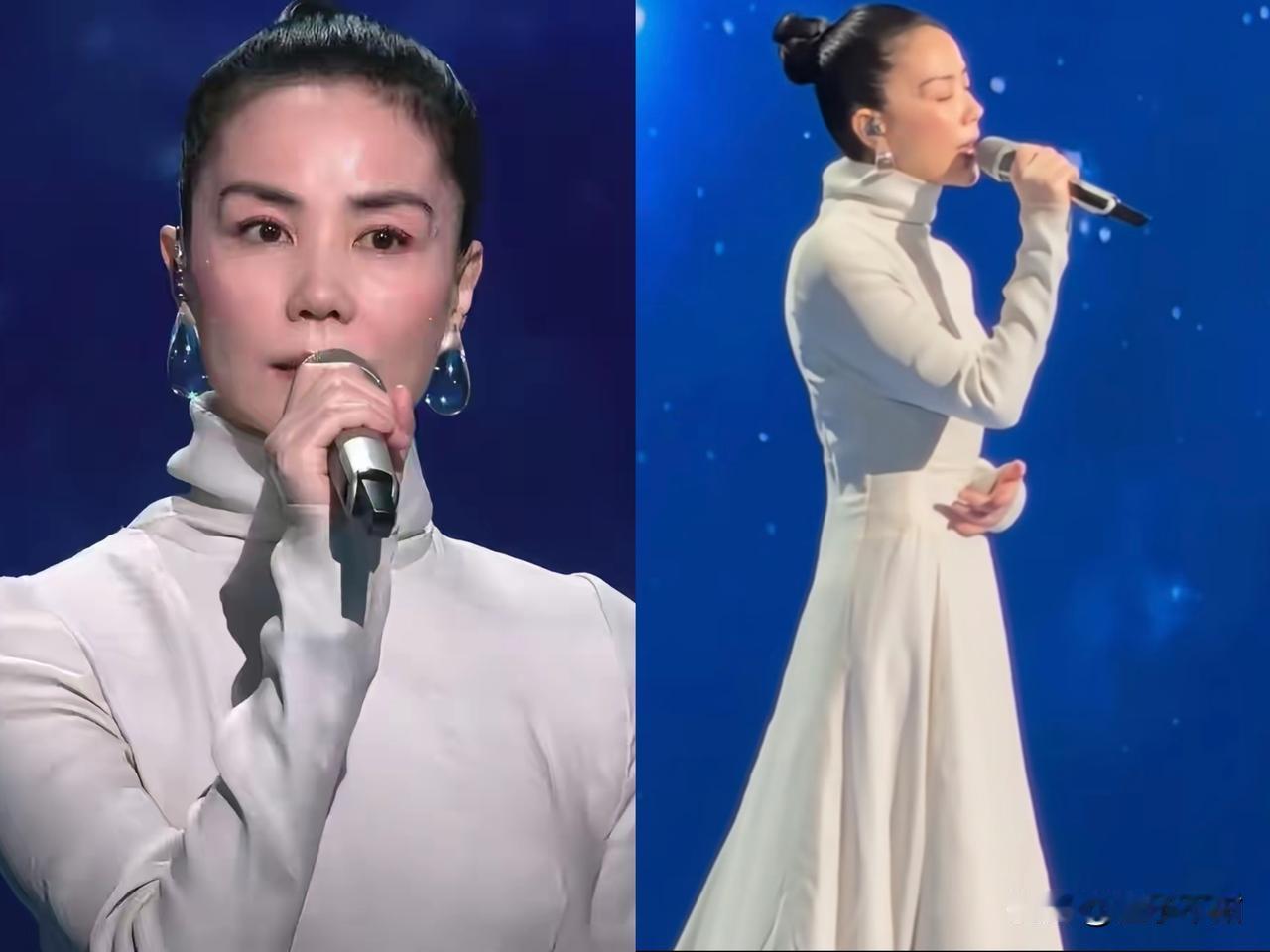 她从来不需要你看懂 穿件打底衫,顶个丸子头, 撸个素颜妆,描个大粗眉,就这么来了 感觉王菲特别自信,她的衣着打扮都很肃净大气,没有那种刻意去扮嫩之类的。 再就是她经常闭着眼唱,头微微侧着,像是在听自己声音的回响,又像是沉浸在一个只有她自己的世界里。 她唱歌时几乎没有那种“左边挥挥手,右边比个心”,最多就是拿着话筒的那只手轻轻抬一下,或者身体随节奏微微晃一晃。 给我的感觉就是,你看你的,我唱我的,特别有个性!