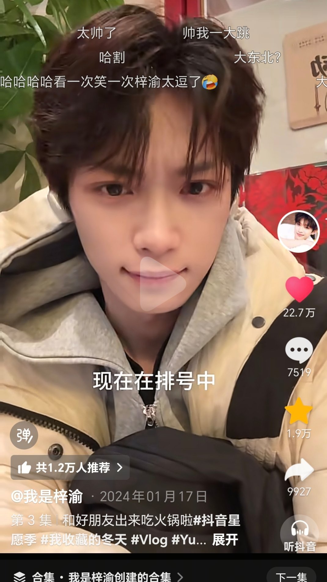路人时候刷到vlog也因为梓渝这张帅脸分享给闺蜜