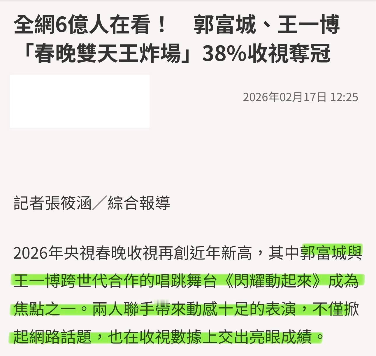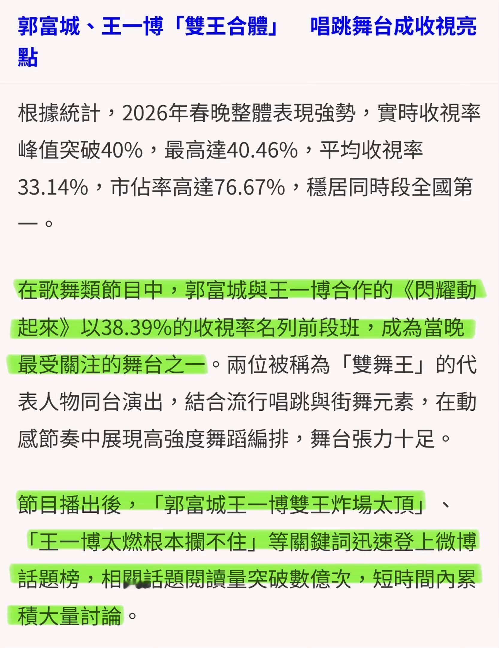 王一博台媒报道:王一博郭富城收视登顶,双天王炸场王一博2026年央视总台春晚