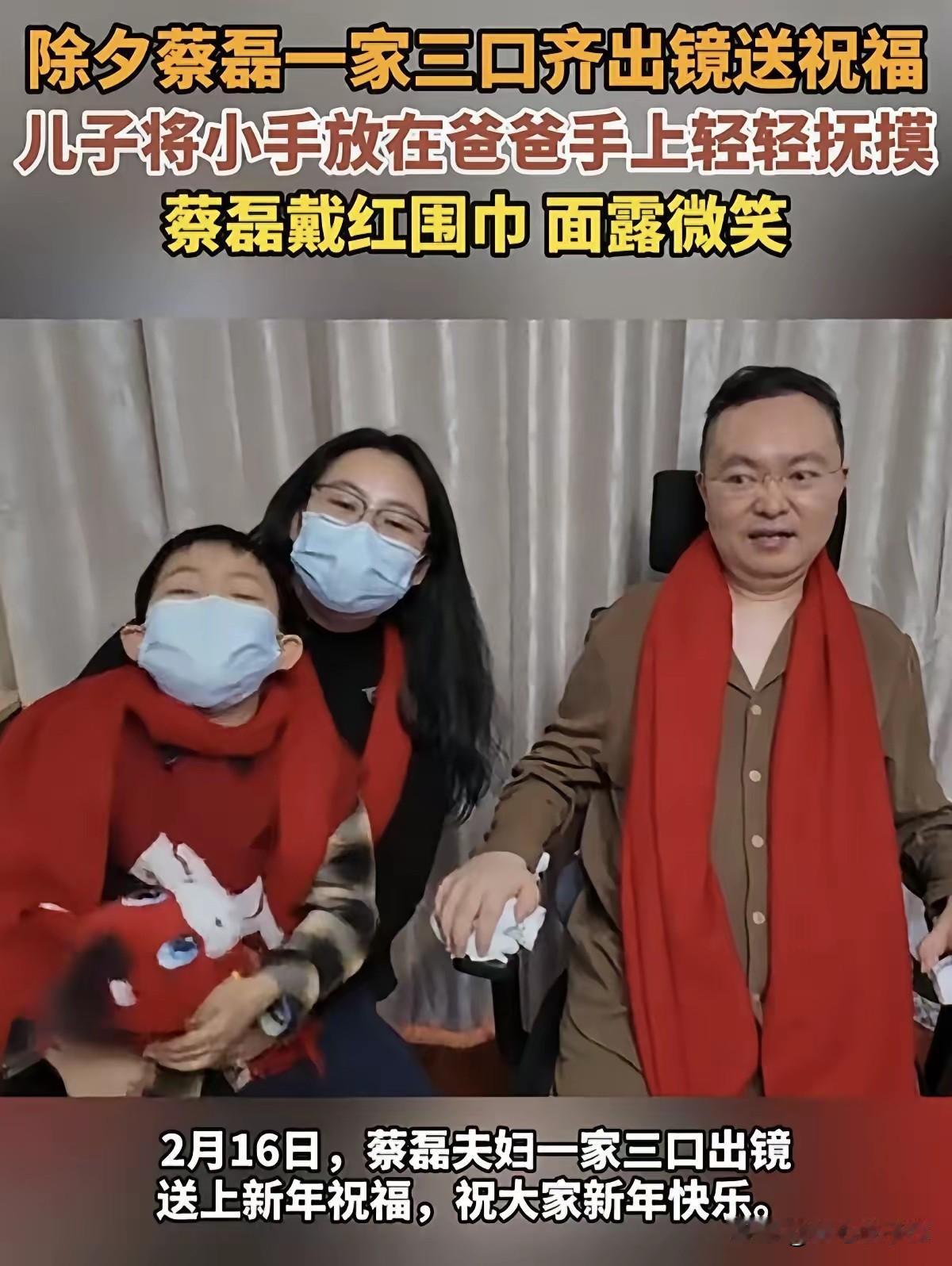 蔡磊一家三口除夕出镜送祝福!蔡总,加油!你一定能战胜渐冻症,永远活下去。你是中国人民的骄傲,因为有你,渐冻症患者有了活下去的希望,好人有好报!祝福蔡总一家人新年快乐!愿蔡总快快健康好起来,战胜病魔,奇迹一定会出现,早日康复!图片素材来自网上