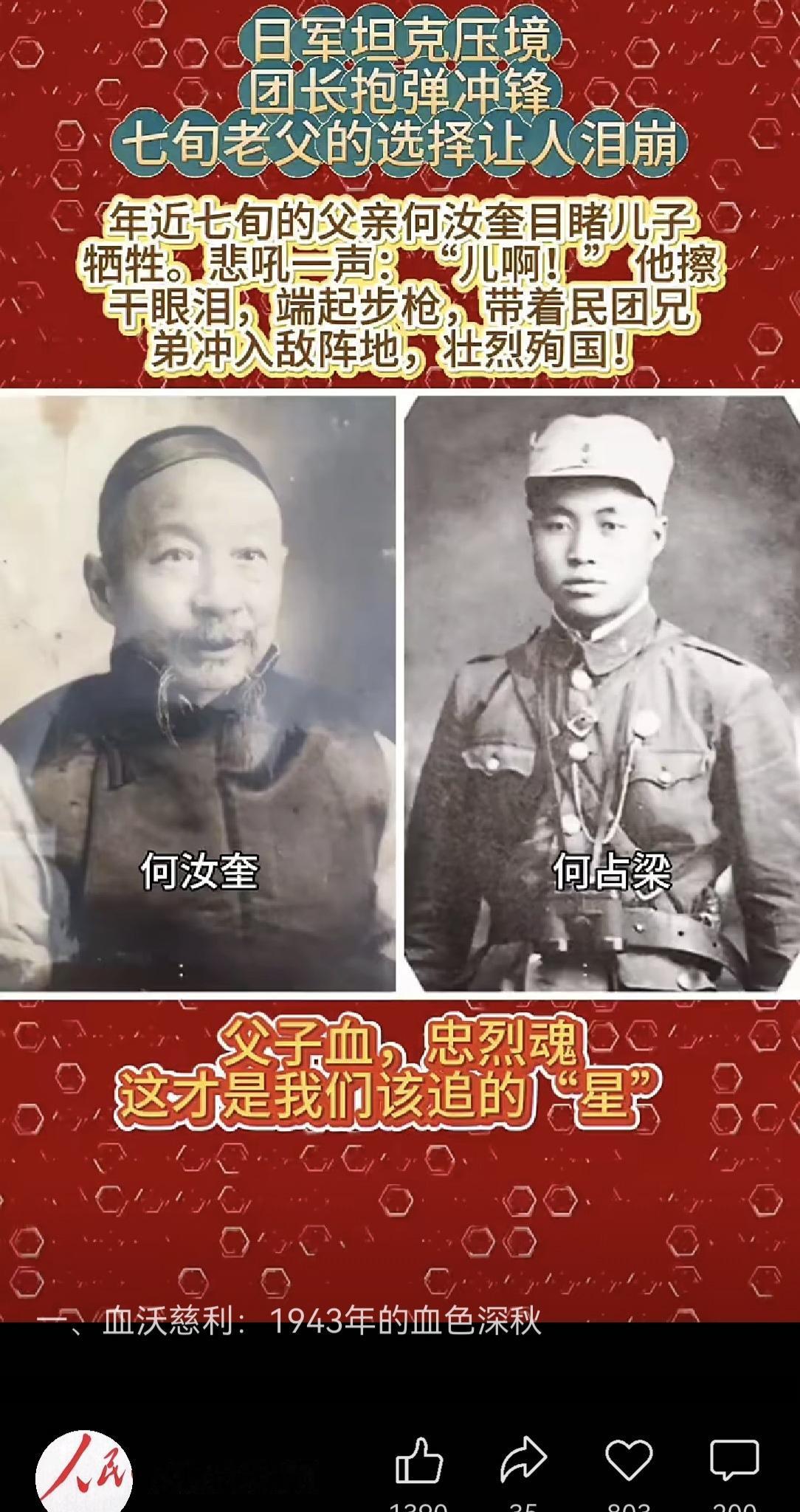 抗日英雄何汝奎、何占梦父子,满门忠烈,浩气长存!永垂不朽!他们的英名和事迹将永留