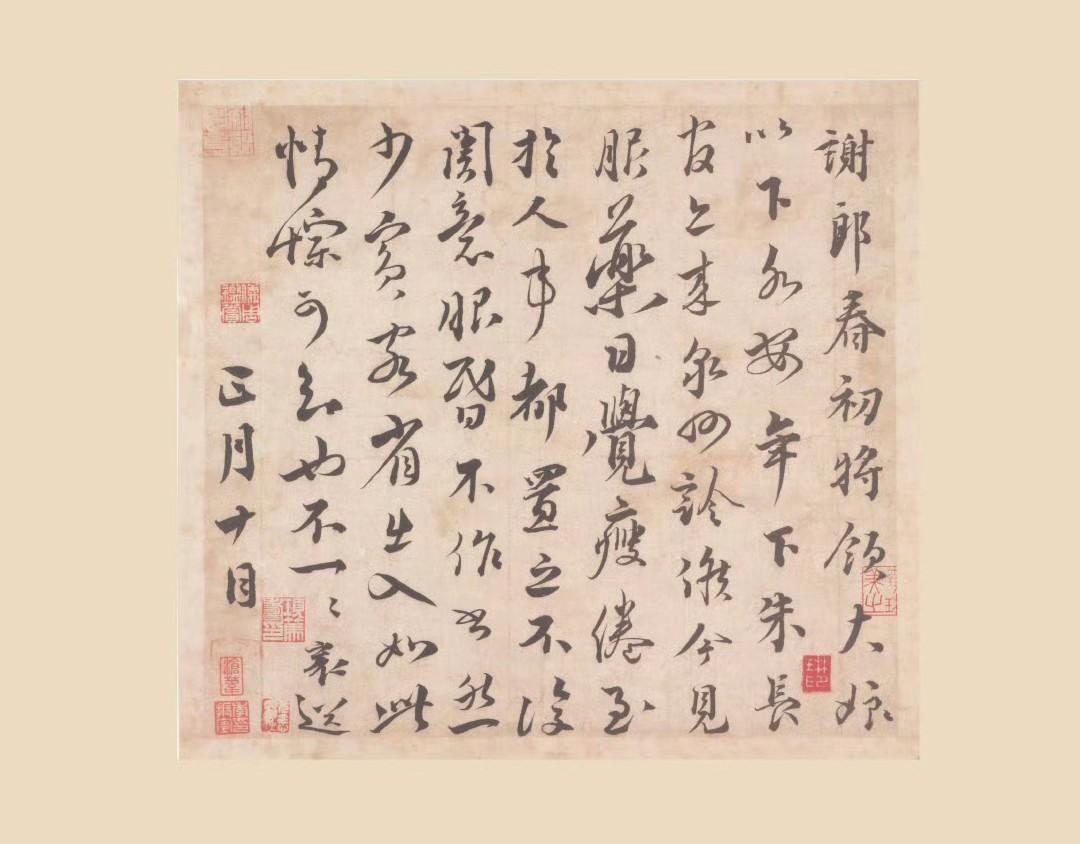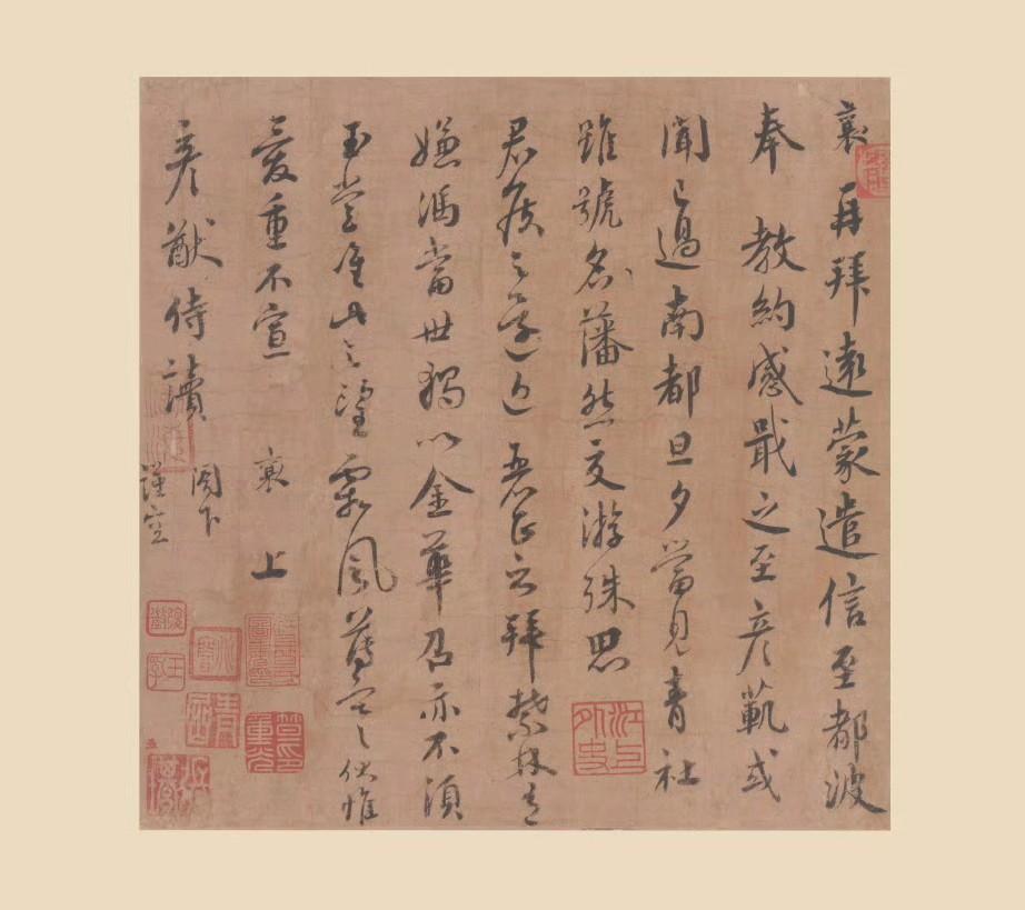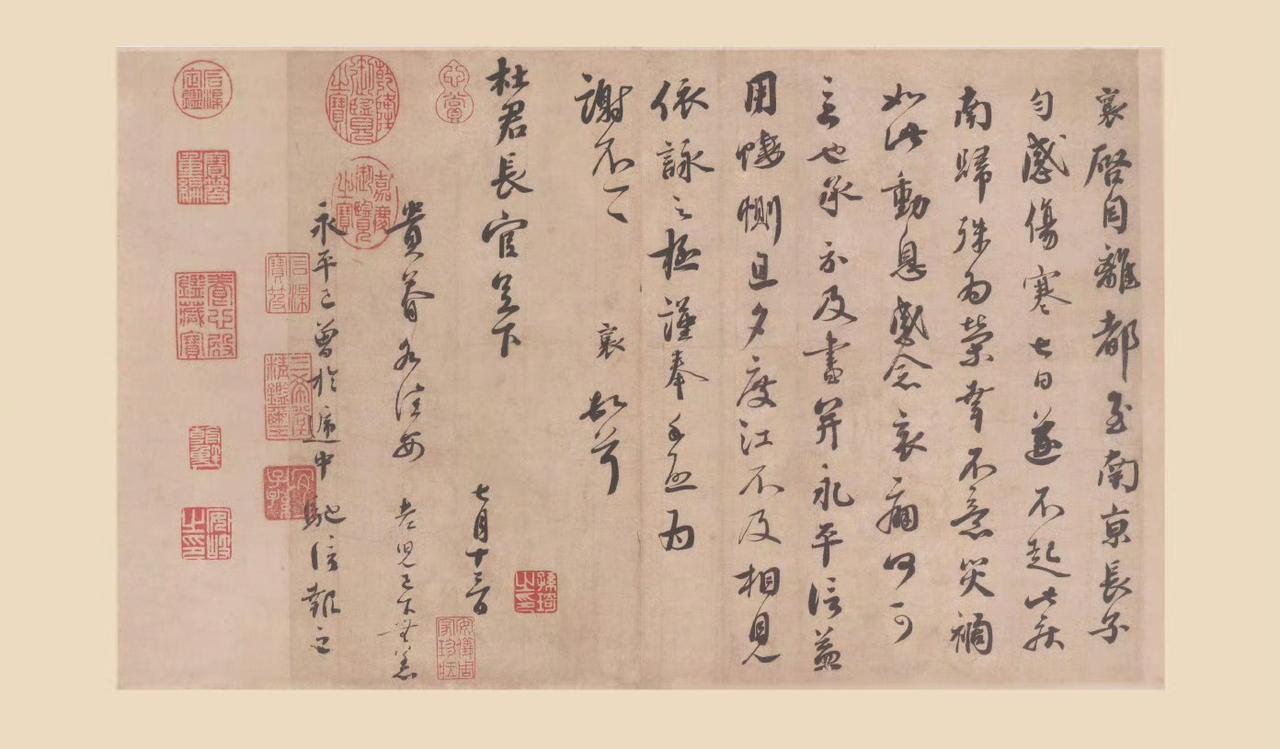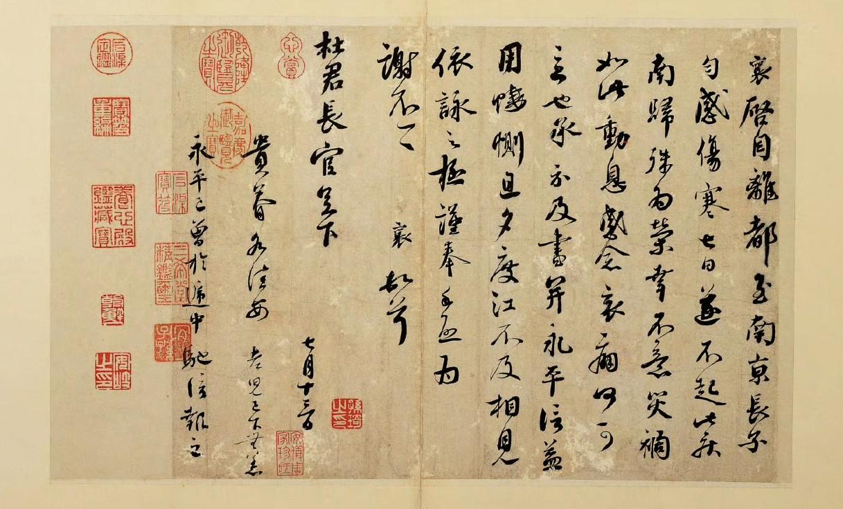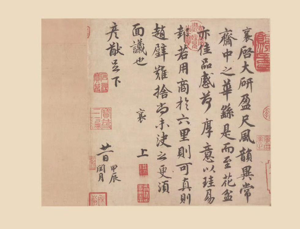米芾手札选 《参政帖》,又称《苏太简参政帖》,纵19.6厘米,横6.8 厘米,行