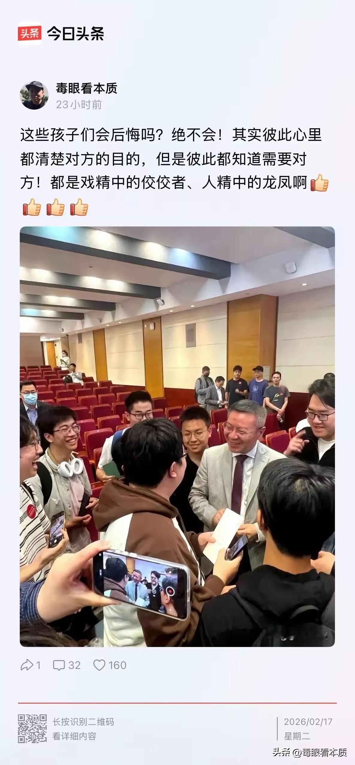 张教授戴眼镜 周围的年轻人戴眼镜 张教授看到这群年轻人,笑了 这群年轻人看到了张教授,也笑了。 每个人都笑了。 也许,他们在谈论有一件引以为傲的事儿,未来充满希望的事儿,想想就很幸福的事儿。
