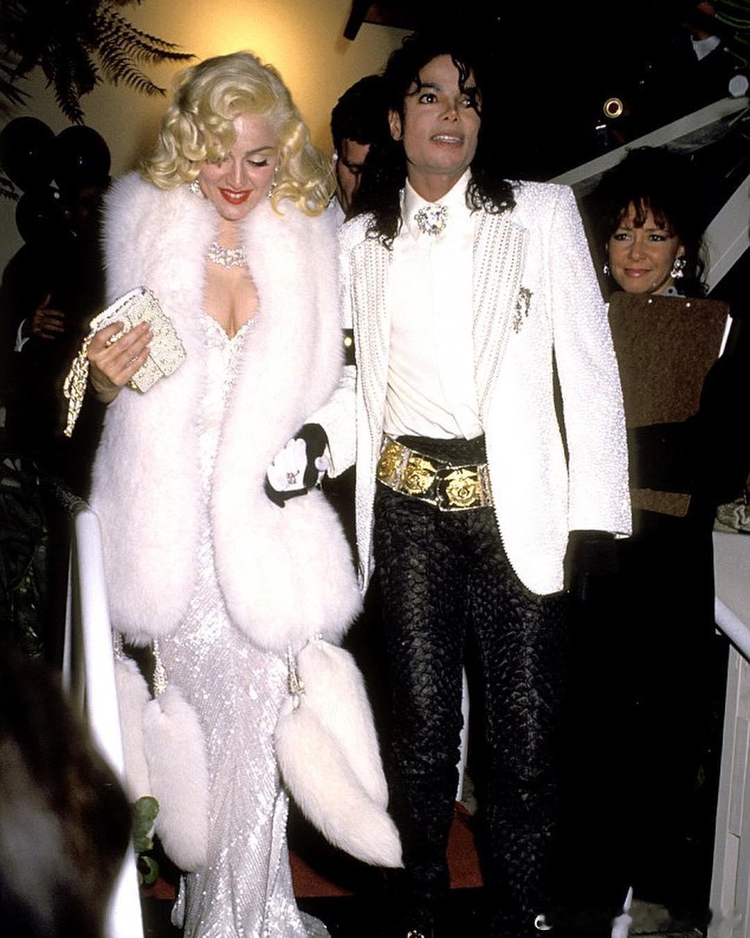杰克逊和麦当娜合影,麦当娜低头一瞬间,挺像梦露的,看得人都脸盲了。