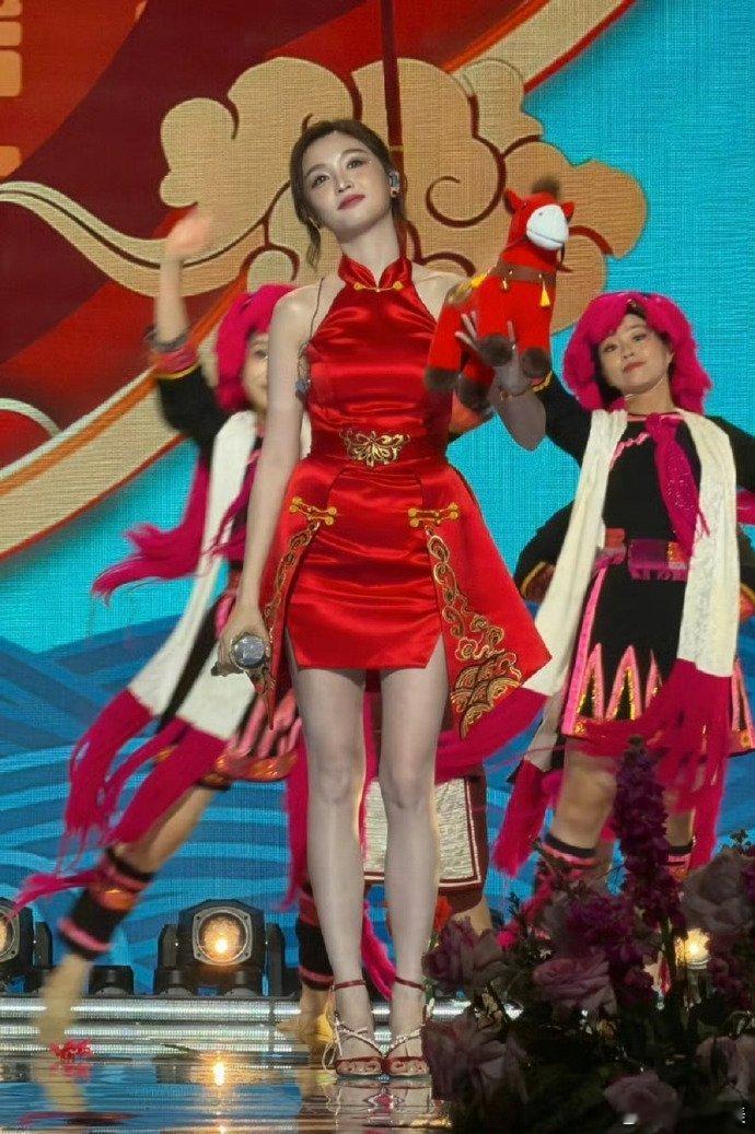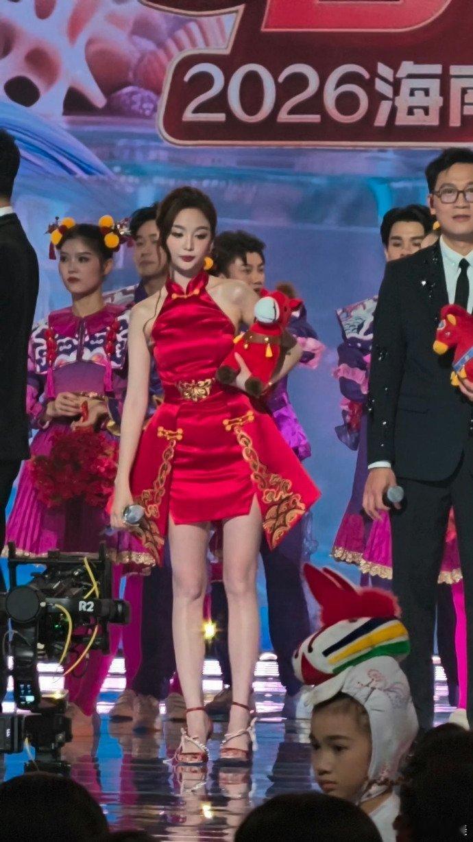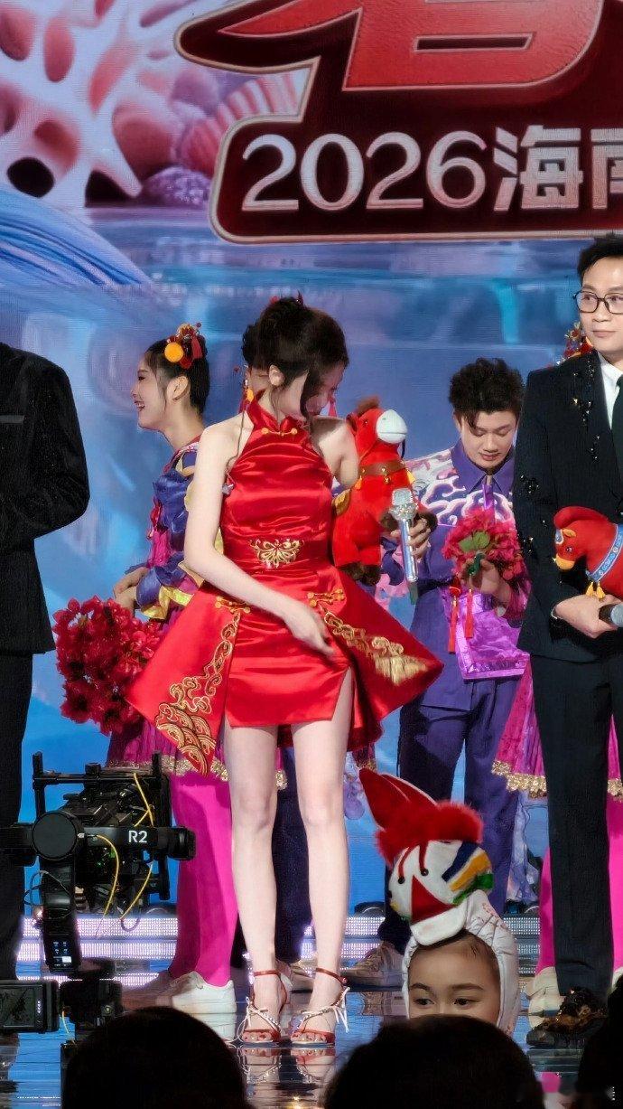 吴宣仪海南春晚红裙 美哒哒