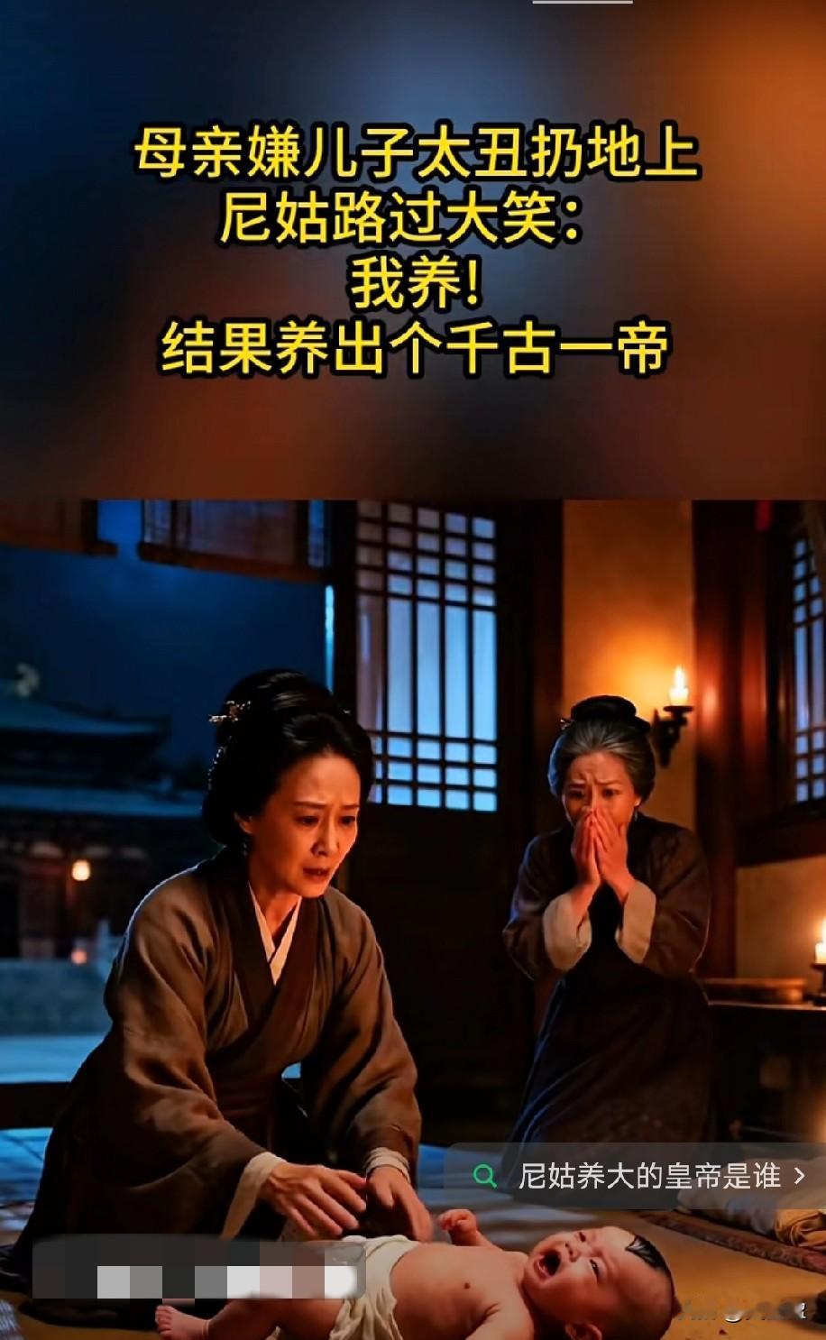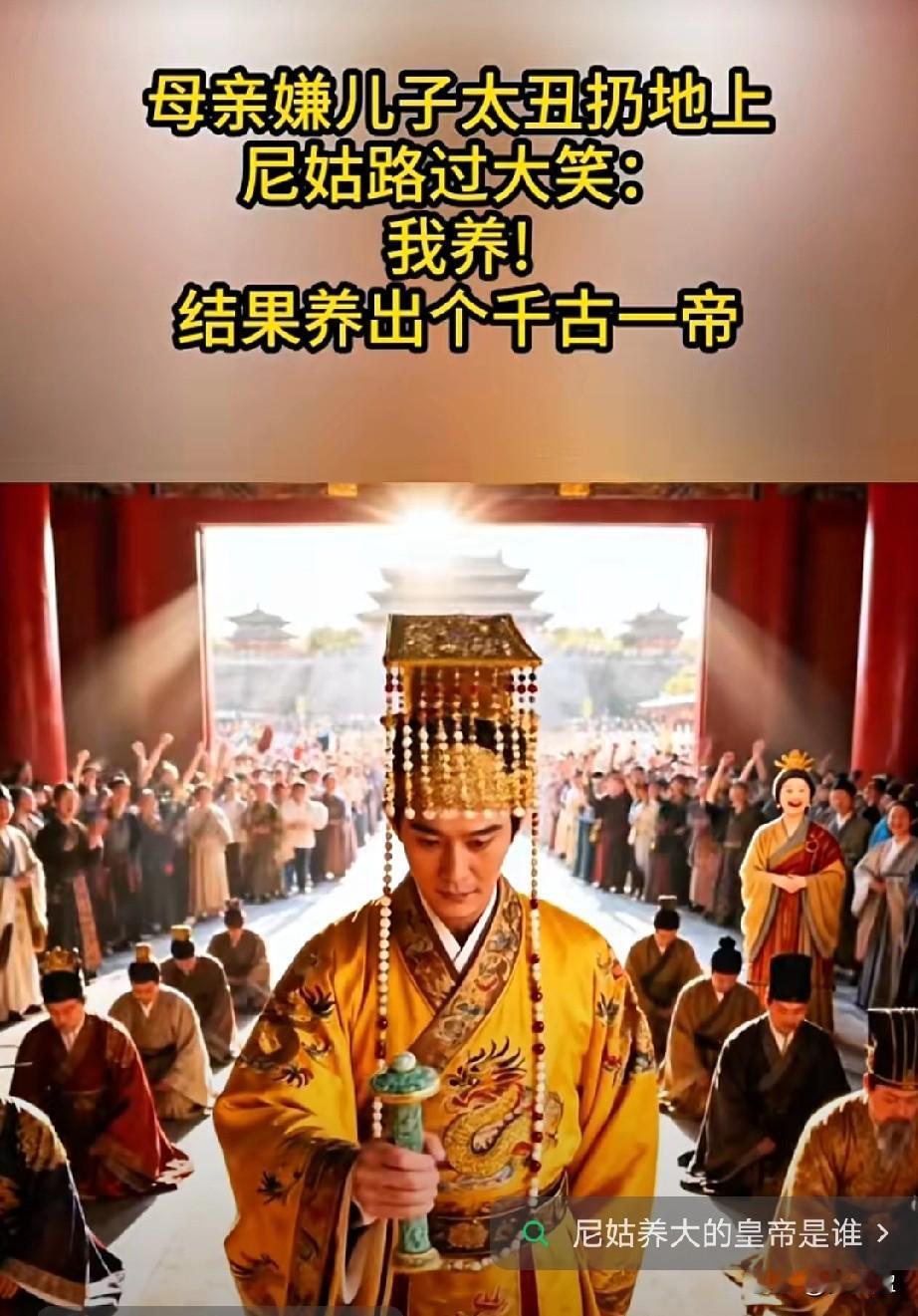 尼姑养大的皇帝是谁? 母亲嫌儿子太丑扔地上, 尼姑路过大笑:我养,养出千古一帝! 听着婴儿哇哇啼哭的声音,路过的一个尼姑进来恰巧看到了落在地上的孩子,她没有因为婴儿的相貌丑陋而感到嫌弃,反而觉得这婴儿相貌惊奇,必有一番大作为,结果养出了千古一帝!