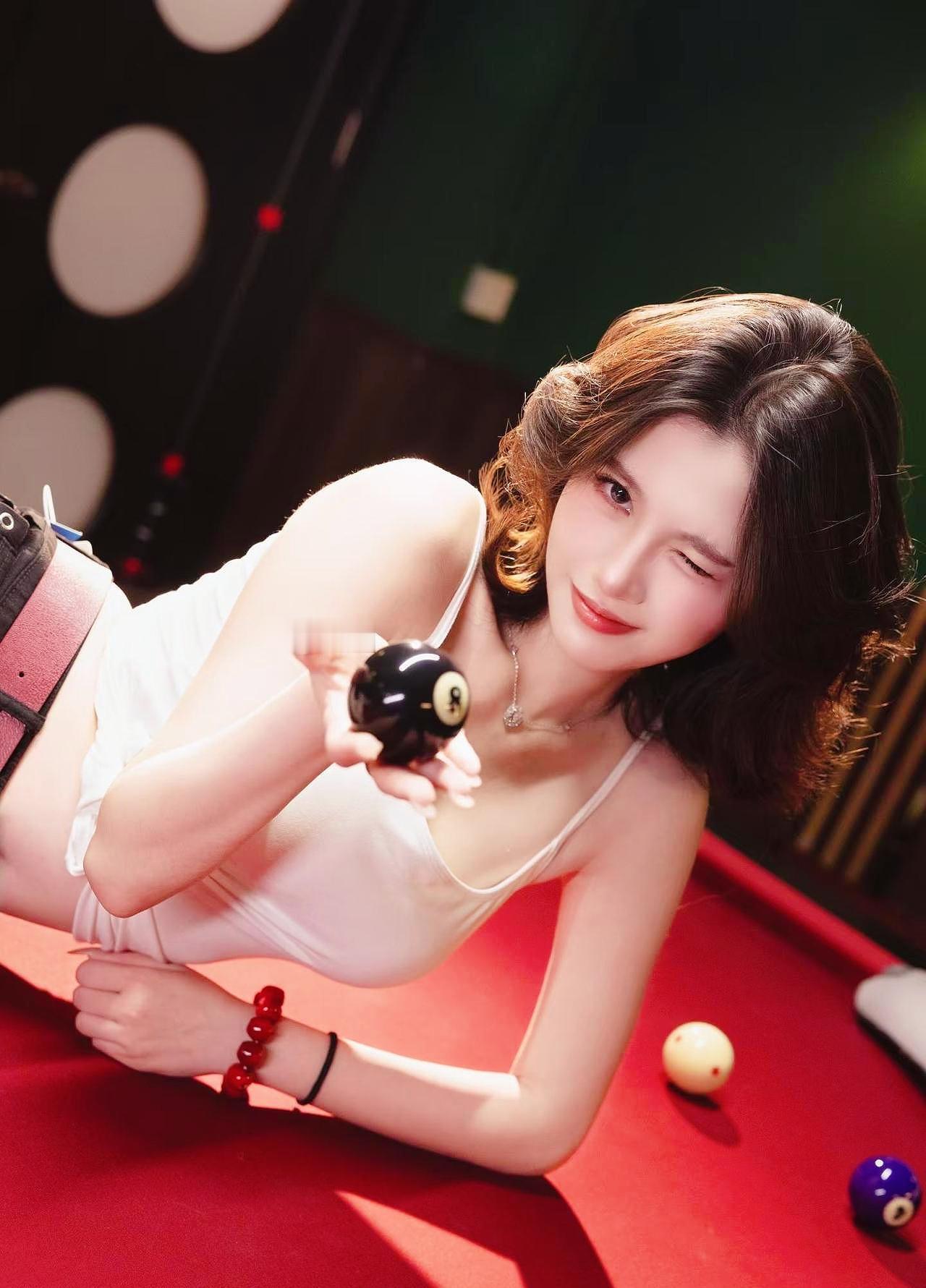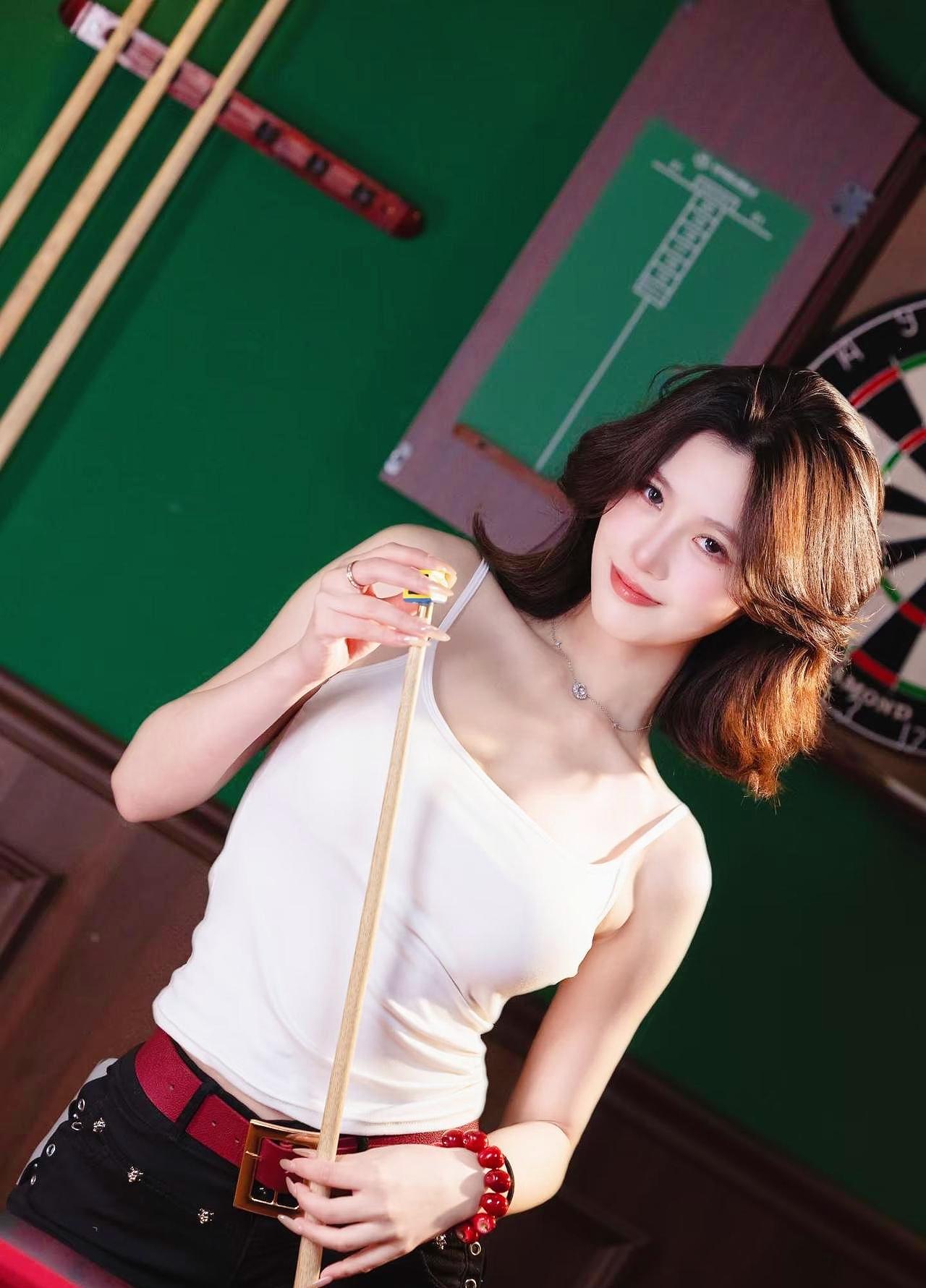 《雅戏佳人》 翠案红台落照柔,青丝漫卷胜风流。 纤指轻衔牌影俏,一杆斜倚占鳌头。 原创诗词