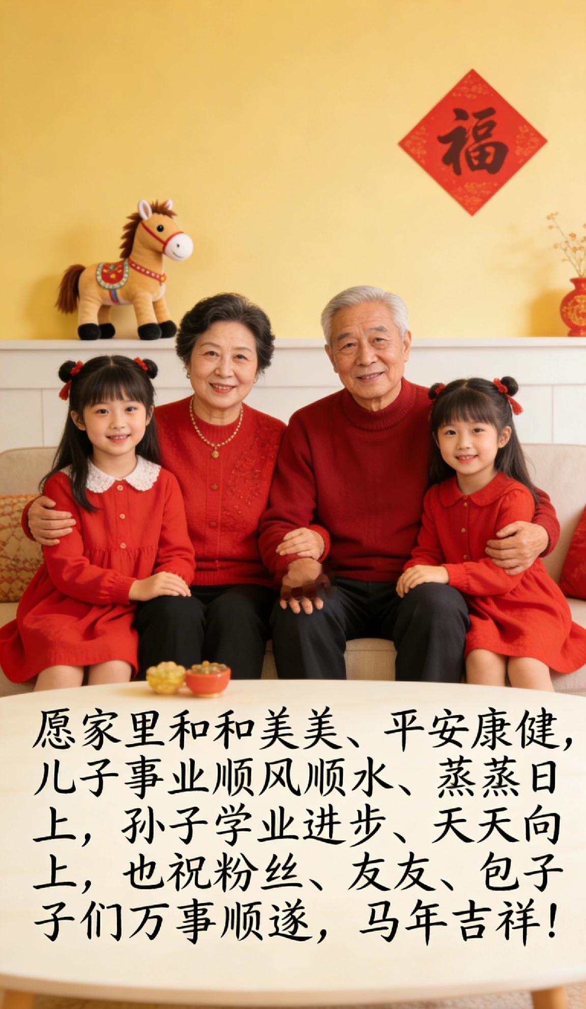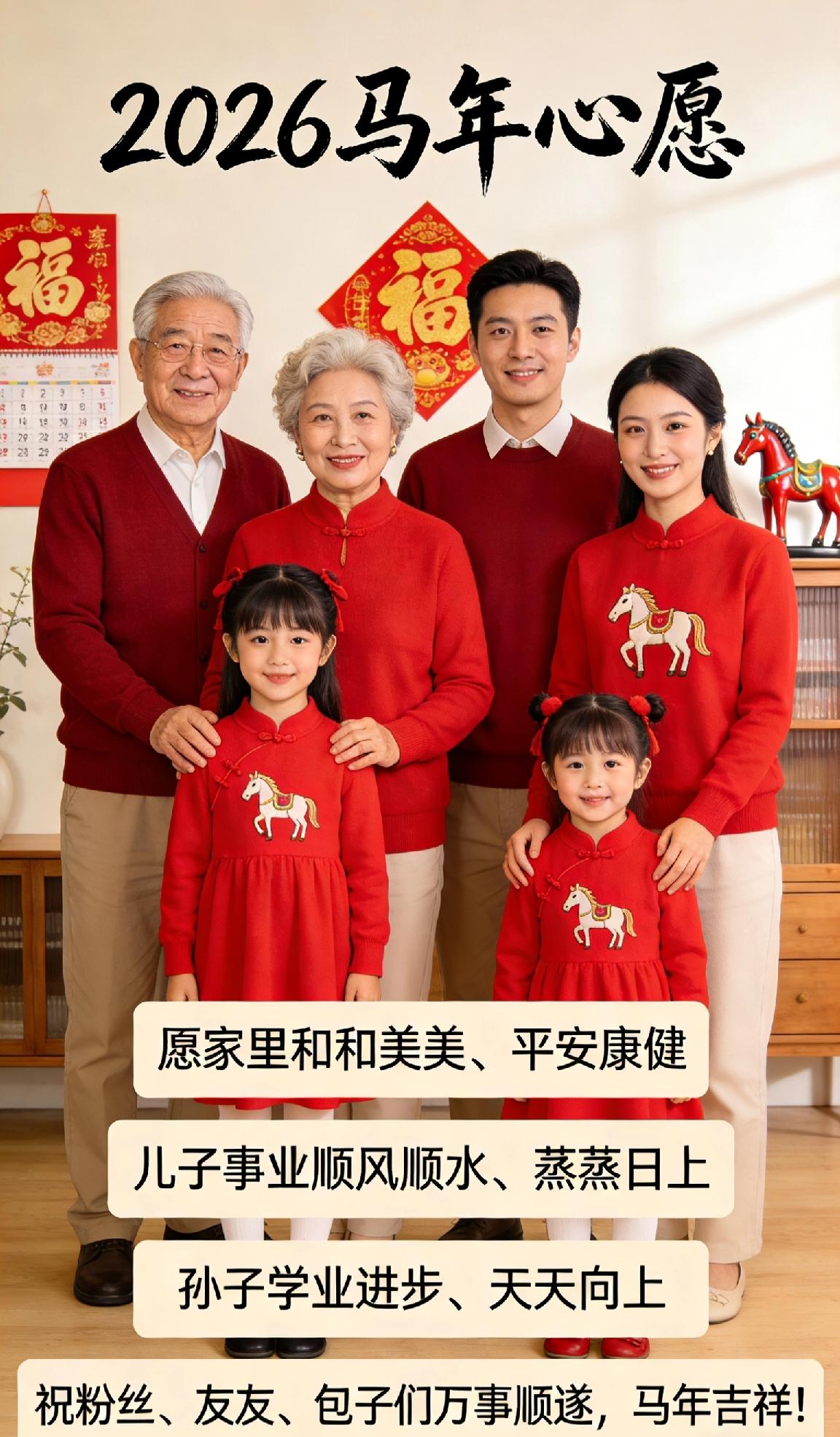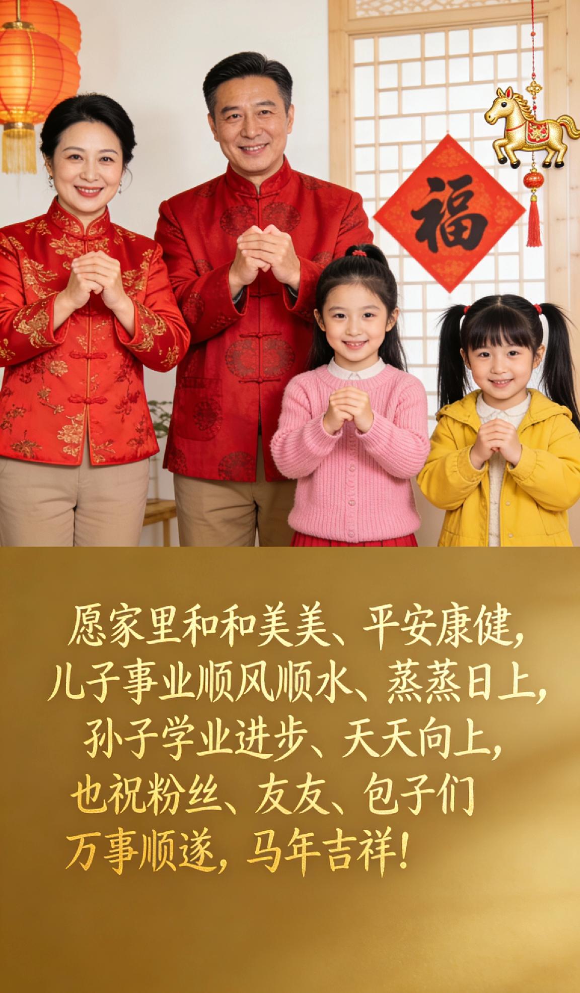 马年到了你有什么心愿马年心愿很实在:愿家里和和美美、平安康健,儿子事业顺风顺水、蒸蒸日上,孙子学业进步、天天向上,也祝粉丝、友友、包子们万事顺遂,马年吉祥!马年到了你有什么心愿 阖家幸福马年大吉 新春心愿