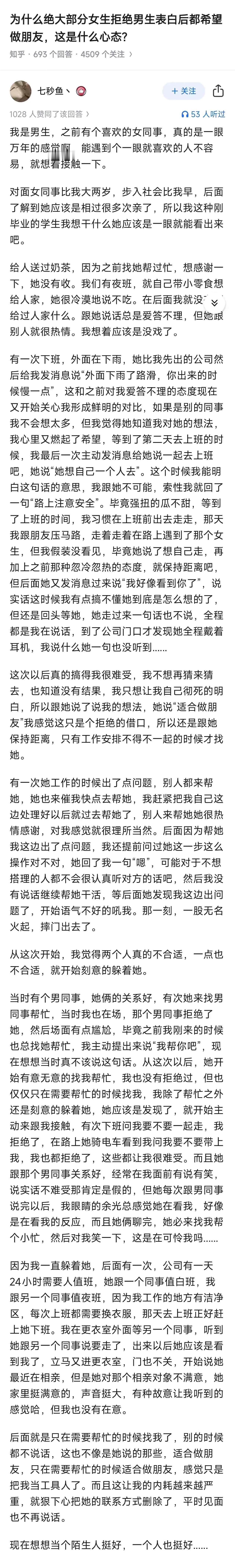 为什么绝大部分女生拒绝男生表白后都希望做朋友,这是什么心态?