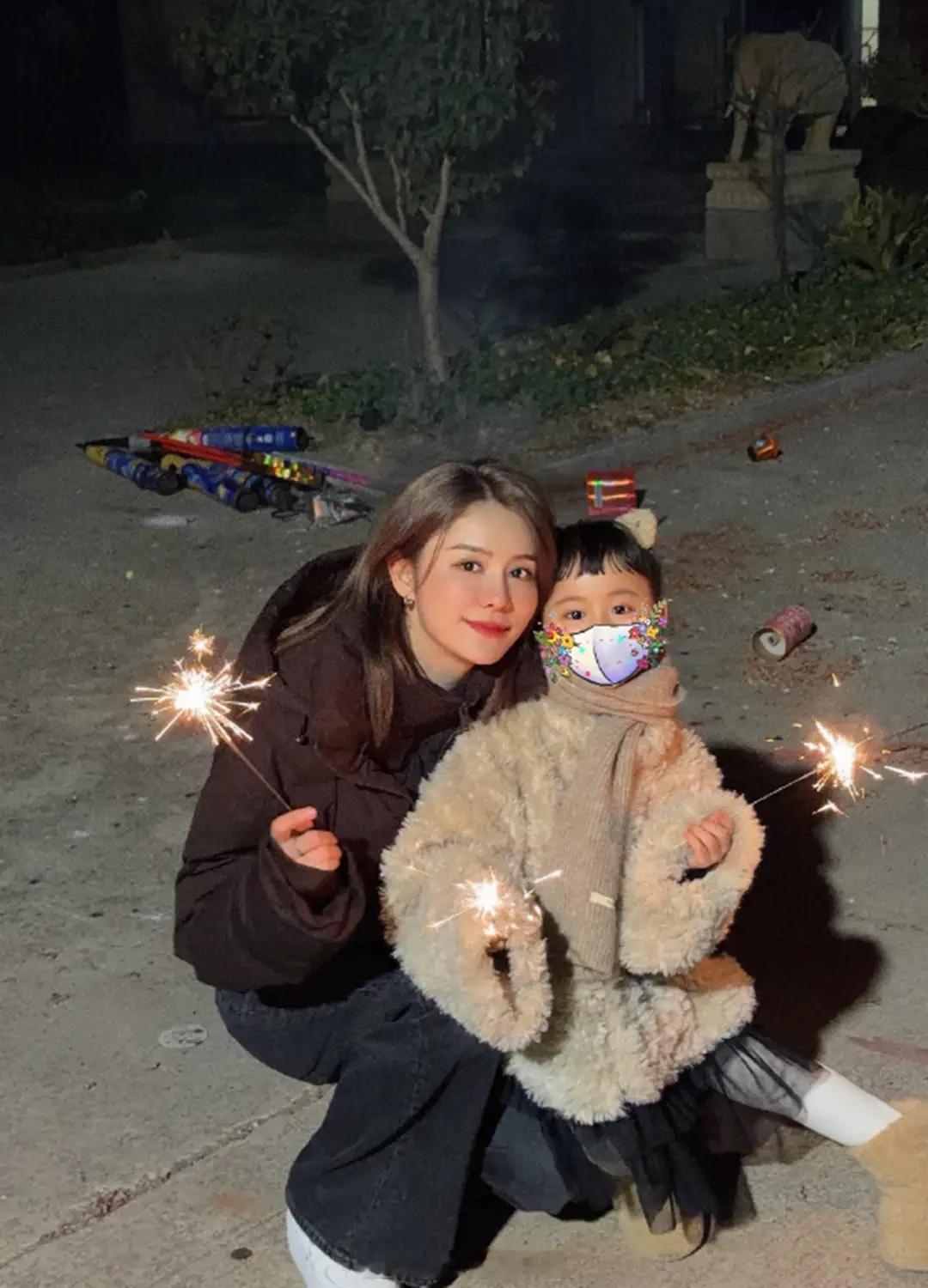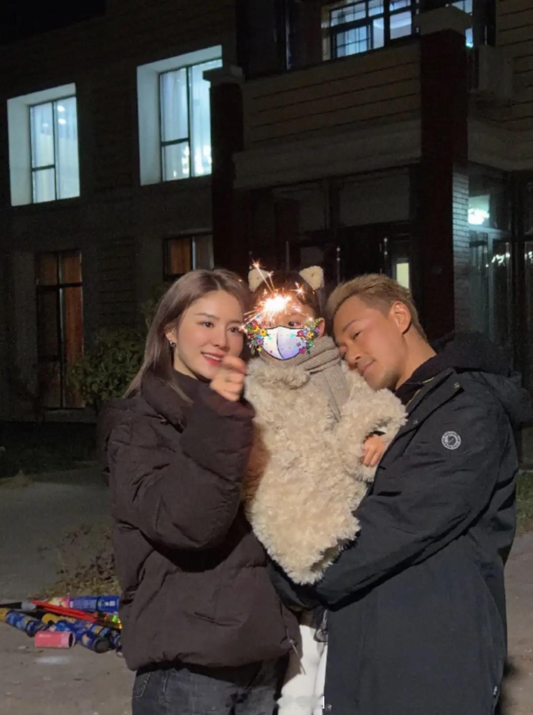 林峯随张馨月回娘家过年,一家放烟花,女儿新年衣服大得她都能穿!