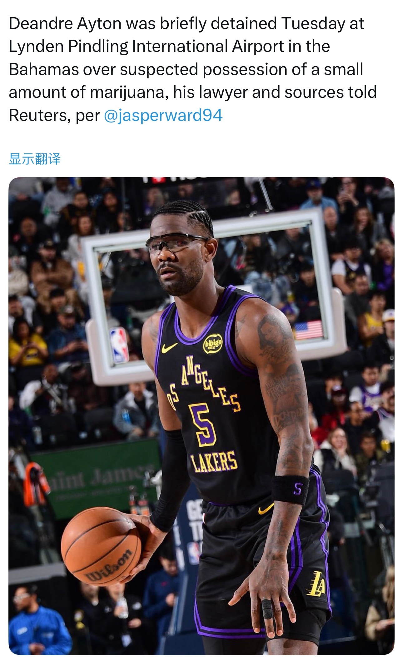 据路透社消息,德安德烈·艾顿的律师及相关信源透露,他于周二在巴哈马的林丁平德林国际机场,因涉嫌持有少量大麻而被短暂拘留!