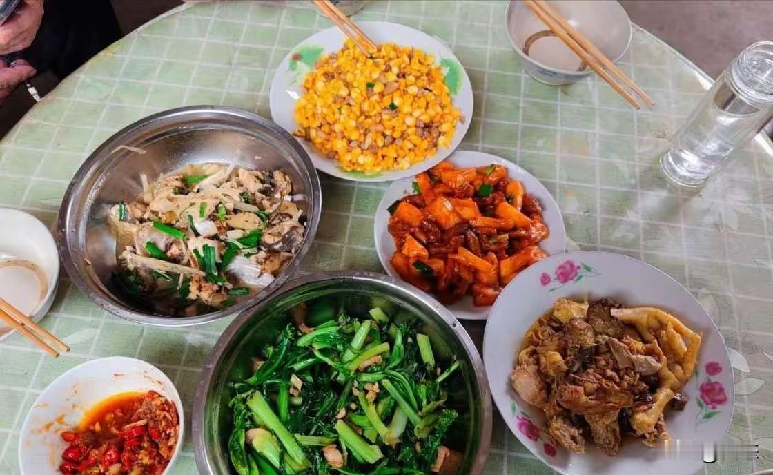 年夜饭,一般都是大鱼大肉的,一网友晒出年夜饭,看着简单,但是实在。 年夜饭家人