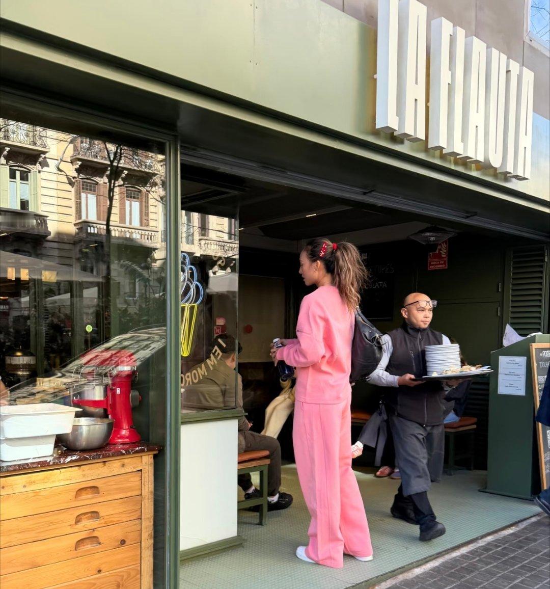 网友在巴塞罗那偶遇郑钦文,一身粉色,好时尚!