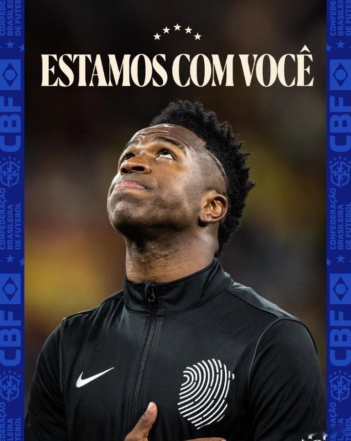 巴西足协对维尼修斯表示声援。本周二,客战本菲卡的欧冠比赛,他在里斯本为皇马取得进球后,再次成为了种族歧视行为的受害者。