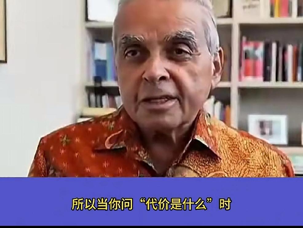 刚刚看了一个采访的视频,记者问被采访的专家,中国强大的代价是什么?专家没有直接回答他的问题,而是从侧面进行分析。 专家说:“中国人的寿命从二战时期的大约40岁,达到了今天的70多岁,他们现在有足够多的食物,有学上,有房子住,有8亿人摆脱了贫困,让脱贫人数最多的国家就是中国。” 这时候采访的记者又追问说:“中国强大的代价是什么呢?”专家就说:“所以当你问代价什么的时候,你的眼睛是瞎的。”言外之意,中国的发展是有目共睹的。根据当时专家回答的语境来看,专家是说给那些,天天拿中国强大而付出的代价说事的妄言者们听的,希望他们把眼睛擦亮了说话。 专家还用自己的亲身经历,他说他经历过贫穷,从没有马桶用,到没有马桶用,那种体验,没有经历过的人,是不会懂得。 我查了一下,这位专家是马凯硕,1948年出生在新加坡的印度后裔,小时候家境贫寒,是新加坡的资深外交家,担任过新加坡的常驻联合国代表,也是一位长期从事亚洲研究的院士。也许因为马凯硕是亚洲通,在国际场合有很多关于他给记者、学者讲解有关亚洲的事宜,尤其对中国的讲解是站在中立的立场上,看的比较透彻,讲解的也比较客观。 下面一段是有关马凯硕台湾的演讲词: 2025年3月17日,马凯硕在微博发布他半年前在中国台北的演讲,马凯硕表示:“地缘政治是非常现实和残酷的,有些台湾人一边煽动‘台独’,一边还在幻想‘独立’之后的日子。”他直言:“如果继续走向‘台独’,那么台湾地区不但不会变成一个‘独立国家’,反而会变成一座‘监狱’”。(节选马凯硕—百科)(个人观点,不喜勿喷,谢谢!)