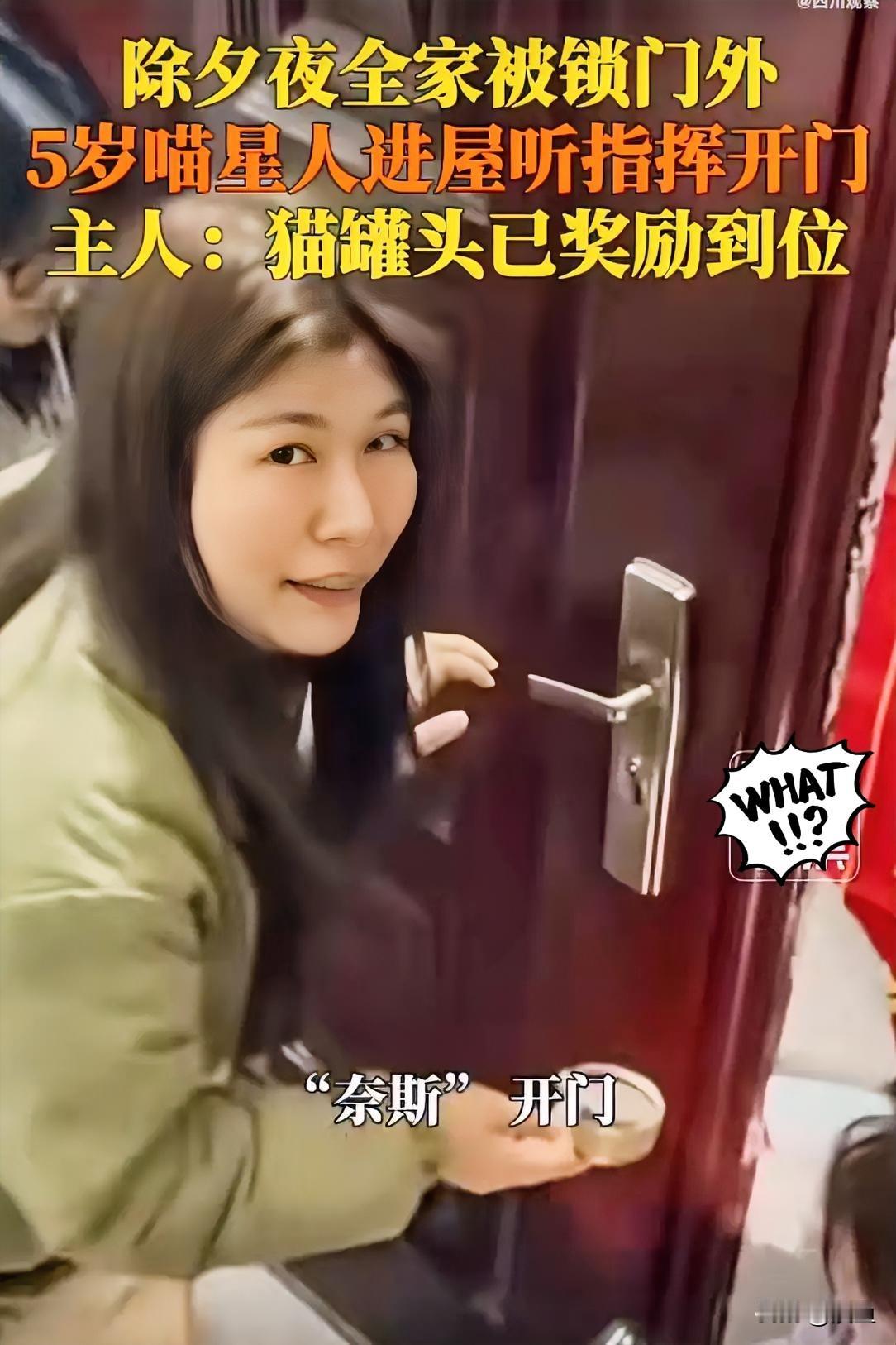 喵星人立大功! 除夕夜把全家锁门外,这操作在整个湖北也是没谁了! 一家五口本来兴冲冲出门吃年夜饭,结果半路发现忘带东西,折回来才发现钥匙锁屋里了。 大过年的,开锁师傅早回家包饺子去了,哪还有人接单?五个人在冷风里急得直跺脚,差点就要动手砸门。 也就是这一刻,家里那只平时高冷的猫成了全村的希望。 死马当活马医,顺着透气窗把猫塞进去,隔着防盗门在那疯狂喊话指挥。本来都没抱啥希望,谁能指望一只猫听懂人话? 结果神了!几分钟后门锁“咔哒”一声,真开了! 这哪是猫啊,简直是全家的救命恩人!平时嫌它这货会开门到处乱跑,关键时刻是真顶用。 赶紧开了个罐头伺候着,不然这大年三十非得在门口冻成冰棍不可。