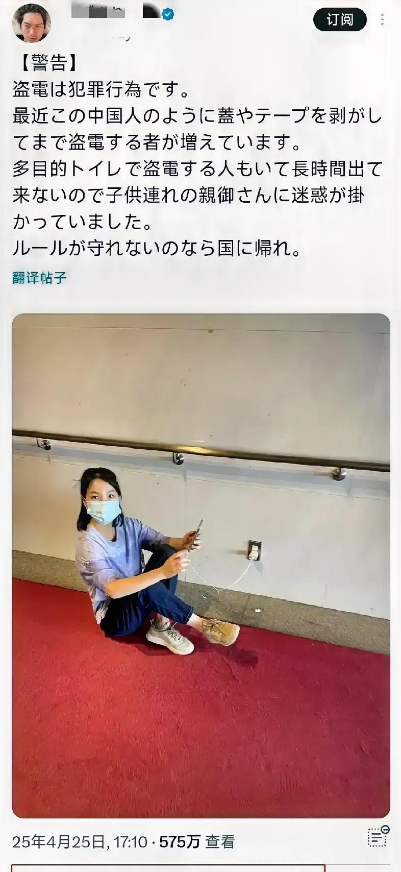 如果偷电人很富有还会去偷电吗? 这可能只有日本人才有的问题,这问题本身就透着一股偏见。在中国,电价亲民,公共场所、咖啡厅、小餐馆跟老板说一声充个电,都是举手之劳,从来没人把这叫“偷电”。 当年有些日本人看到中国游客在公共场合充电就暴怒,张口闭口“中国人偷电”,本质是狭隘、小气+偏见,把正常求助当成“占小便宜”,反过来暴露的是他们自己的格局。 真正富有的人,格局大、不计较这点小事;只有心里穷、眼界窄的人,才会盯着一个插座上纲上线。 电便宜不便宜是一回事,心宽不宽、人明不明理,才是关键。