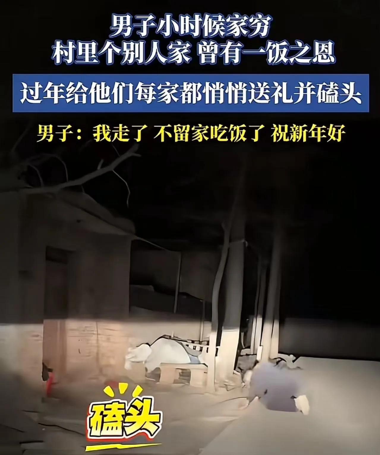 看哭!山东icon,男子小时候家里穷,村里个别人家对他曾有一饭之恩,男子一直记在心上,今年过年有能力了,给每家都悄悄送礼并磕头!男子:“我要外出打工了,以后不留家吃饭了,祝你们新年好!”网友:现在的人最缺的就是感恩之心! 这段温暖的故事,像一束春风,瞬间穿透了屏幕,击中了无数人的心。一个曾经贫困、受过帮助的男子,用行动诠释了什么是真正的感恩,也让我们不得不深思:在这个快节奏、物欲横流的时代,最缺的,或许正是那颗“感恩之心”。 他没有豪言壮语,也没有铺张炫耀,只是默默地走访了曾经给予他帮助的邻里,悄悄送上礼物,磕头拜年。那一幕,简单而纯粹,却让人感受到一种跨越时空的温情。或许,很多人都曾在困境中得到过别人的帮助,也许,也曾在心底暗暗发誓,要用行动去回报那些曾经的善意。 但令人唏嘘的是,现如今,许多年轻人似乎逐渐淡忘了“感恩”二字。忙于追逐梦想、追逐金钱,渐渐丧失了那份最基本的善良和感激之心。有人说,社会变得浮躁,人与人之间的距离越来越远,感恩之心像一颗逐渐枯萎的种子,难以萌芽。 这个男子的故事,恰恰提醒我们:感恩,不仅是一种美德,更是一份力量。它能让我们在困境中坚强,在成功时谦卑,在平凡中感受到生活的温暖。或许,我们都应该学会像他一样,把感恩变成一种习惯,把善意传递下去。 网友的评论也道出了许多人的心声:在这个物质丰富、信息爆炸的时代,最需要的,依然是那份真挚的感情。人与人之间,最珍贵的不是金钱,而是那份发自内心的善意和感激。我们常常忙着追求所谓的“成功”,却忽略了身边那些曾经帮助过我们的人。 或许,真正的幸福,就是在平凡中感受到被关怀的温暖。在这个快节奏的社会,保持一颗感恩的心,让我们的人际关系更加纯粹,更加温馨。让我们都像那位男子一样,记住那些曾经帮助过我们的人,用行动去表达感激,用善意去温暖这个世界。 最后,希望每个人都能在忙碌中停下脚步,想一想:我们是否也曾为别人的善举心存感激?我们是否也能在日常生活中,用一份真诚去回馈那些曾经的善意?因为,感恩之心,才是我们这个社会最需要的正能量。
