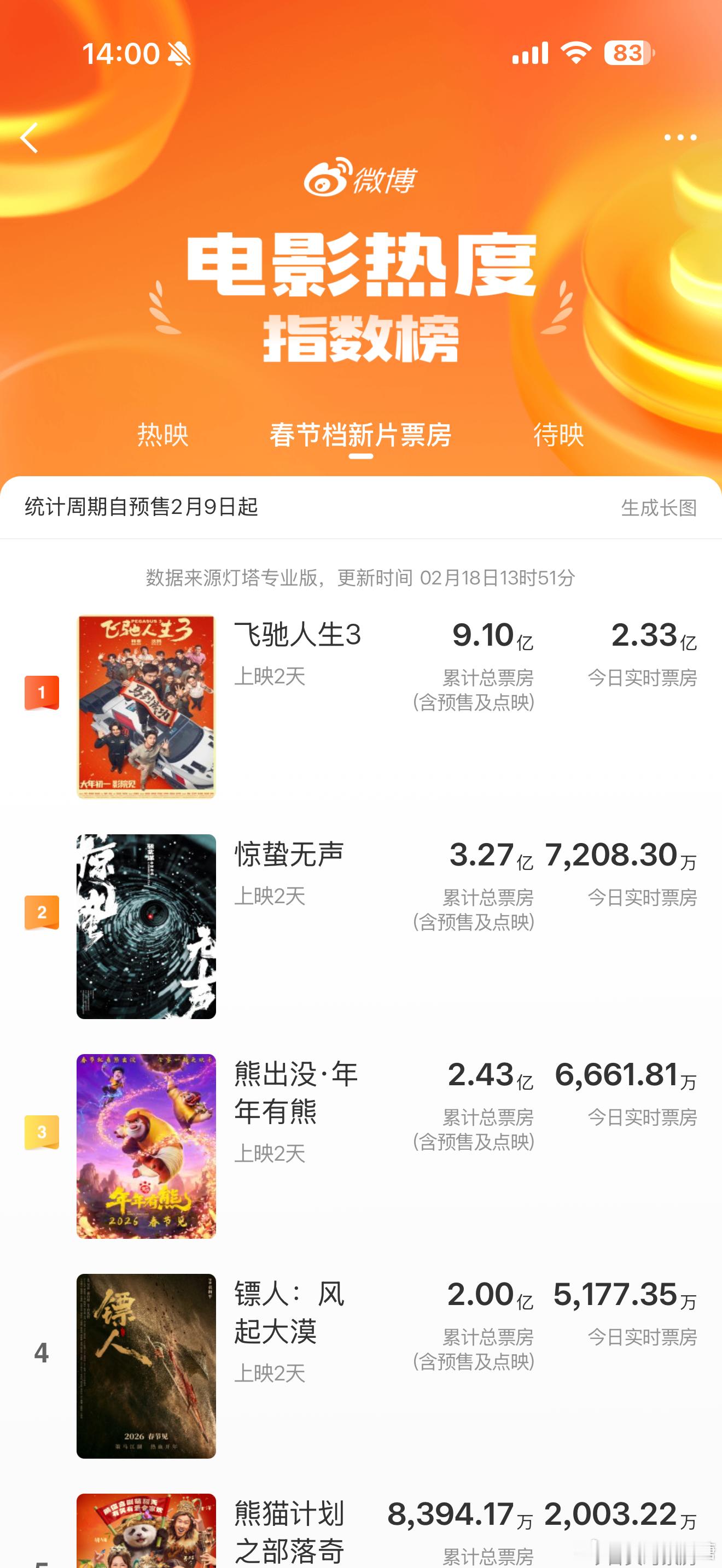 最近的春节档新片票房我准备去看飞驰人生你觉得哪部更好看?票房