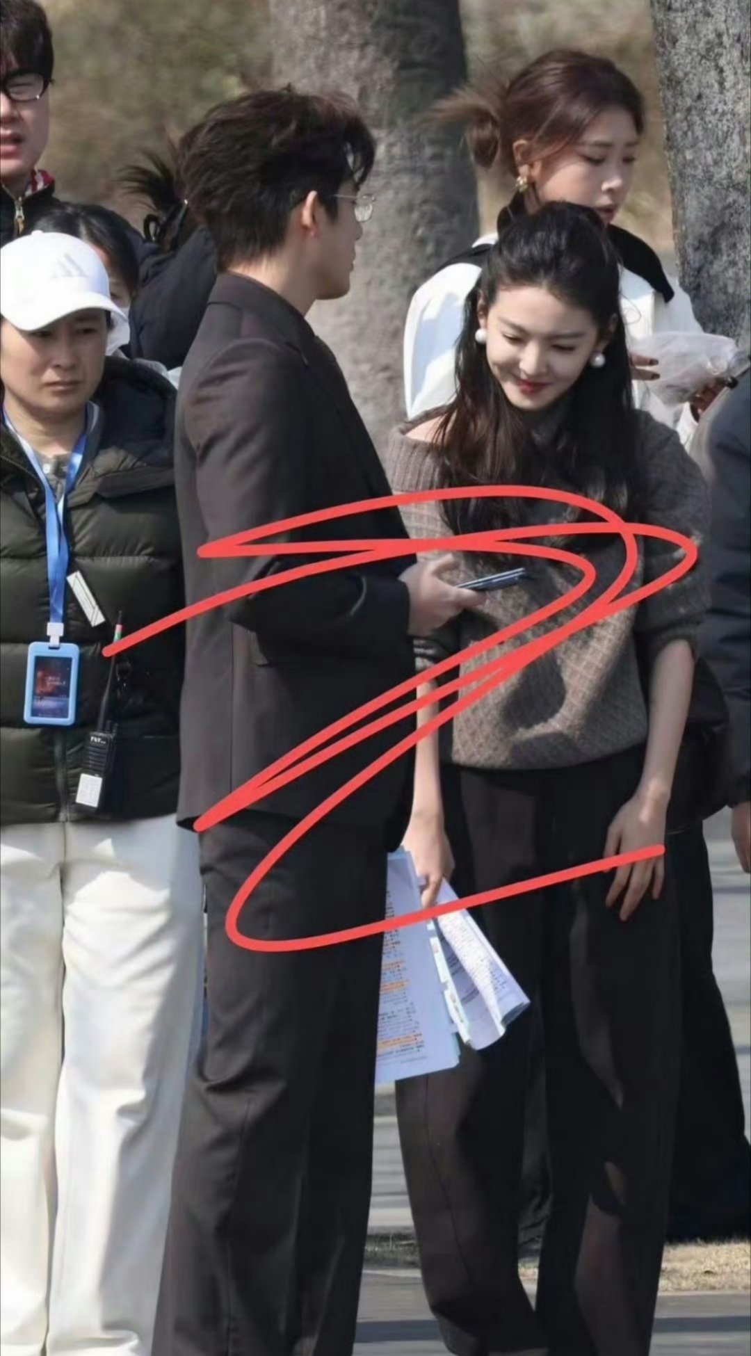 张天爱跟素人合影,胯真的好宽,大宅院似的