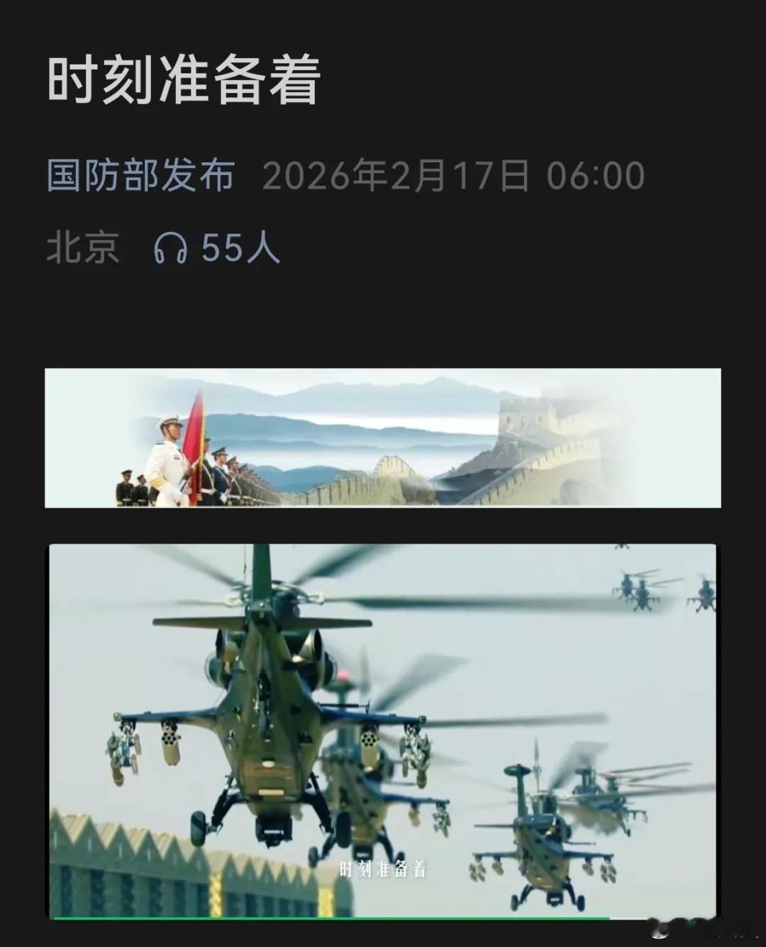 大年初一,国防部发布歌曲《时刻准备着》,以热血铿锵的旋律,发出新时代中国军人的战斗宣言。铁骨淬利剑,铁臂铸尖刀,风云沙场之上,中国军队全时待战、随时能战。