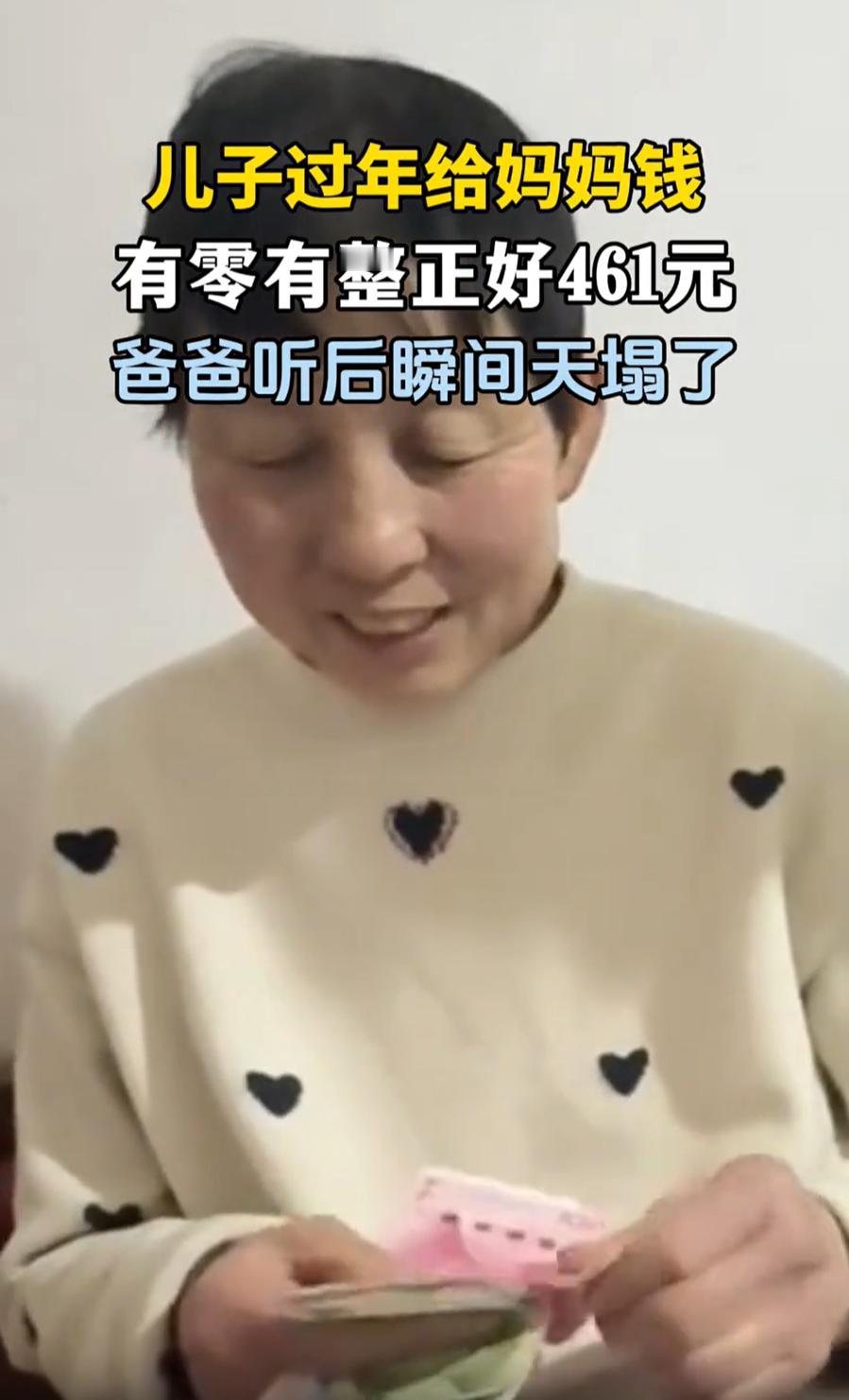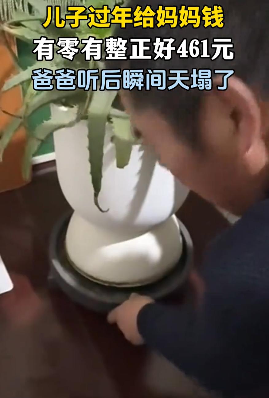笑死了!辽宁,男子除夕回家过年,零点过后突然拿出几百块钱给妈妈,妈妈心想儿子终于长大了,结果一数发现有零有整,一共是461块钱,妈妈还没反应过来怎么回事,一旁的爸爸却直接破防了,原来这是他的私房钱被发现了 原来,男子回家过年时,偶然在花盆地下发现461块钱,看这钱有零有整的,他就意识过来,这应该是老爸背着老妈存的私房钱,可他却没有立刻举报,反而先揣进自己兜 凌晨钟声响起,男子来到父母屋里,直接把钱掏出来递给妈妈,妈妈直接就笑了,说道:哎呀,儿子今年出息了,见到回头钱了。说罢就把钱接过来数钱 一旁的爸爸看到后还没意识到问题严重性,看厚度还以为是五六百,可当妈妈数到后面,不解地询问咋是461块钱,爸爸眼珠突然转了几下,赶紧把花盆掀开,发现真是自己的私房钱,也是气的够呛 对此,有网友调侃:你可以是400块,但不能是461 这事也让人想起老一辈的婚姻相处之道。很多当了一辈子家的人,其实对家里的每一分钱都心里有数。爸爸藏私房钱这事,妈妈未必真不知道,只是有时候睁一只眼闭一只眼罢了。但被儿子这么一搞,这事儿就藏不住了,变成了全家人的笑料 有人说这儿子不地道,让老爸在新年第一天就损失惨重。但换个角度想,这461块钱换来了全家人的欢乐,还有网友们几百万的点赞,这买卖也不亏 再说了,老爸这回也算是花钱买个教训,下次藏私房钱,可得找个更隐蔽的地方