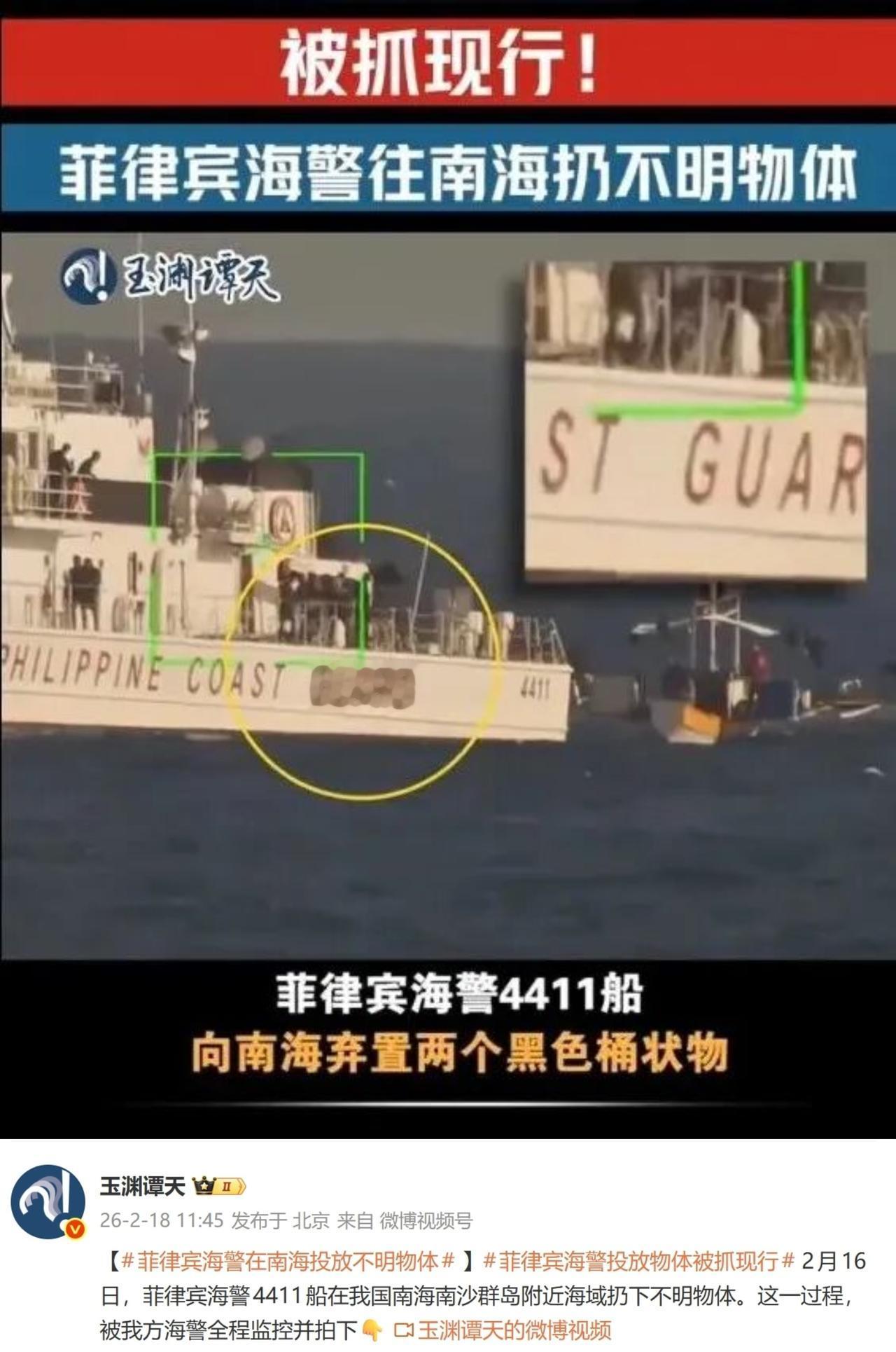 犯了天!屡教不改,就在2月16日菲律宾海警4411船在我国南海南沙群岛附近海域扔下不明物体。这一过程,被我方海警全程监控并拍下。 再说,我们的海域不准任何人来污染,却没想到,从它靠近海域、到停船扔桶的整个过程,全被中国海警的镜头拍得明明白白,连扔桶的动作都一清二楚,直接抓了个现行。 我感觉该教训教训下,你们是怎么认为的 菲律宾舰艇沉没 中国海警船