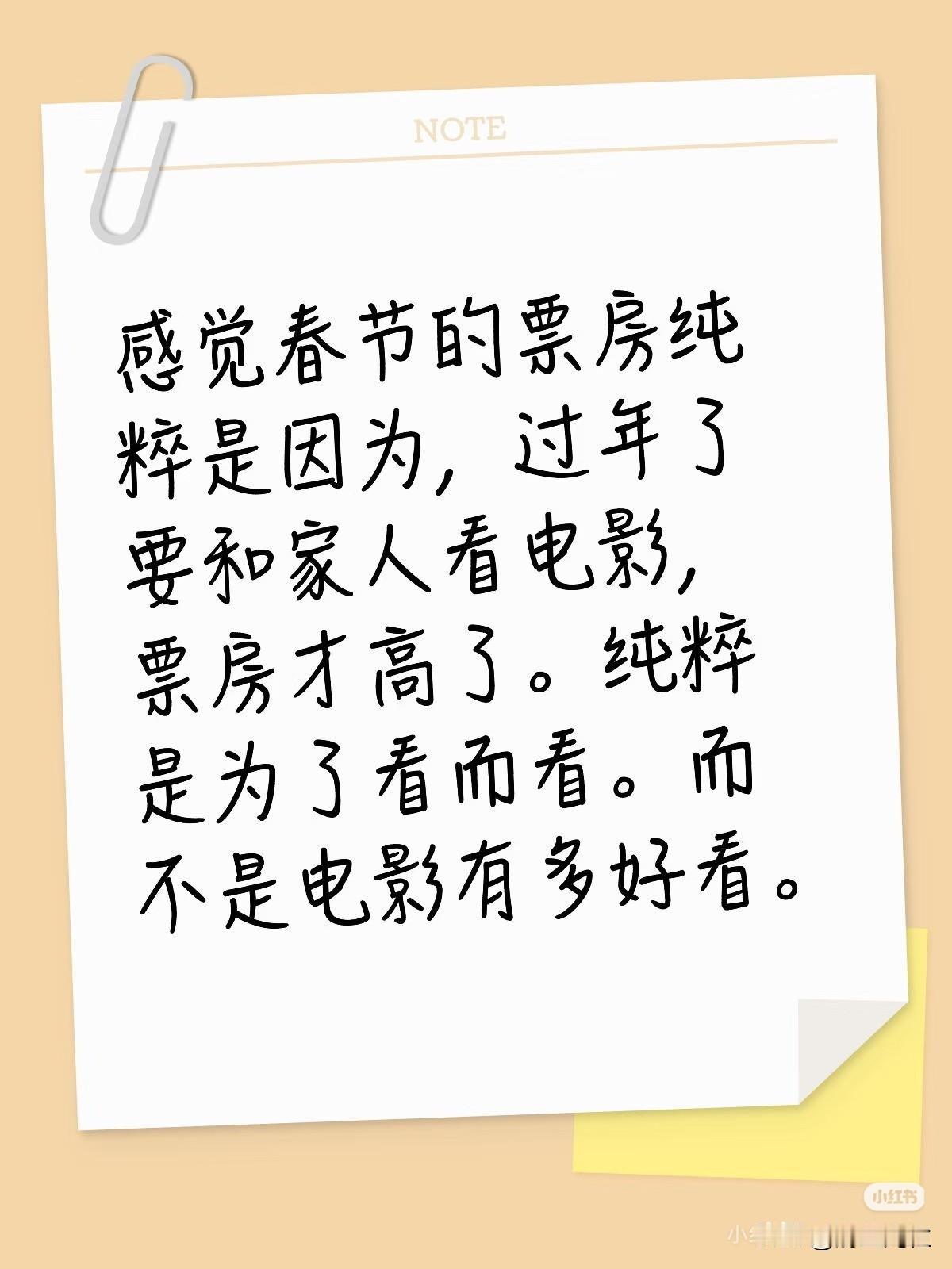 感觉春节的票房纯粹是因为,过年了要和家人看电影,票房才高了。纯粹是为了看而看。而