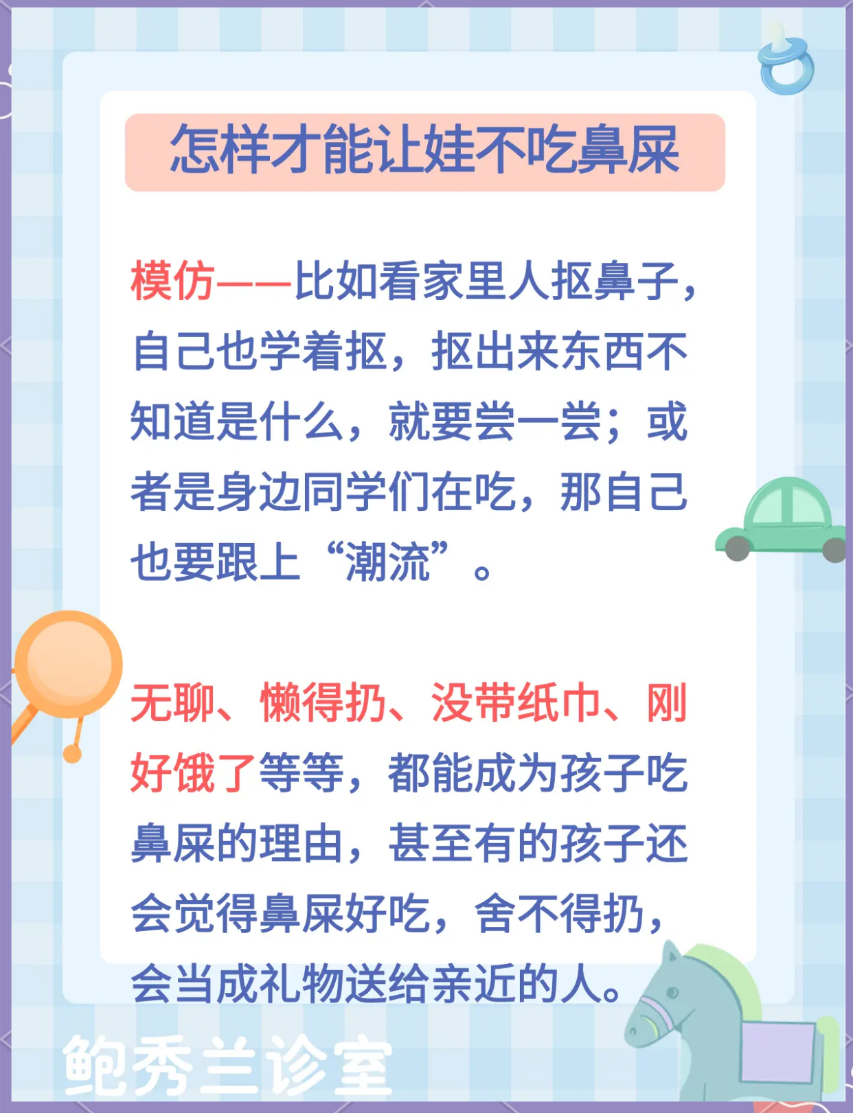 张拿铁吃鼻屎把张踩铃整破防了 今天的内容有点重口味,所以建议大家别在吃饭的时候看。你家娃有没有吃过鼻屎?甚至还“贴心”地问过你:“妈妈(爸爸),你吃不吃,挺好吃的!”别不信,有80%的孩子都干过这事儿!你也可能小时候干过。没吃过的人,咱也不知道到底是啥味道,关键是,它会不会对健康有影响?张踩铃怀疑张拿铁的多动症是遗传