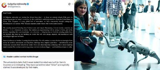 【印一大学被曝买宇树机器狗冒充自研】印度人工智能(AI)影响力峰会于16日在新德里开幕,为期五天,该科技展会由印度电子和信息技术部主办,号称“有史以来规模最大”。展会期间,加尔戈蒂亚斯大学团队展示的所谓自主研发的机器狗,被发现其实是买来的中国企业现成产品。 当地时间2月18日,这所大学在社交平台X的官方账号发声明承认,展示的这台设备确实是从中国企业宇树科技采购的。(环球时报)