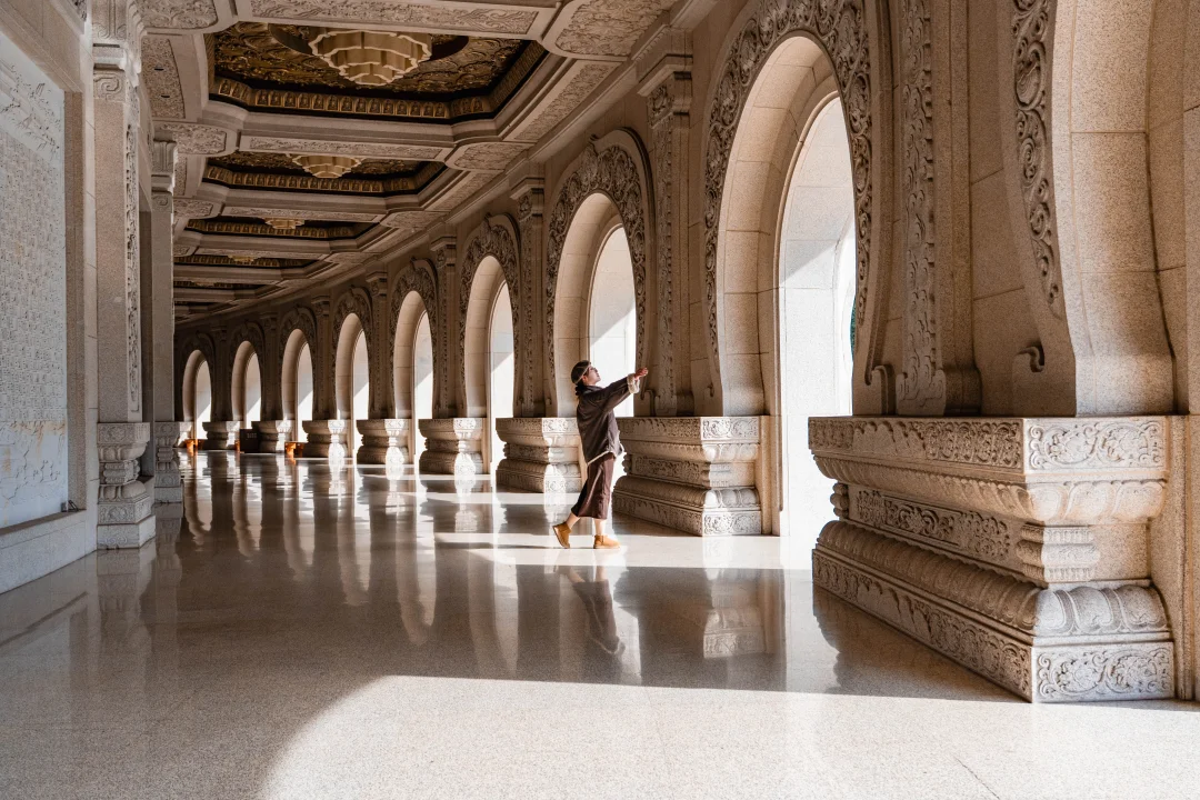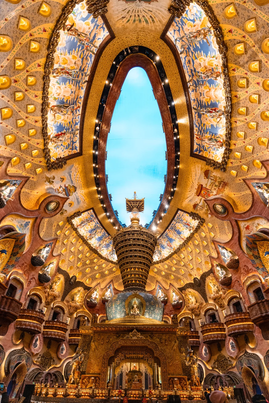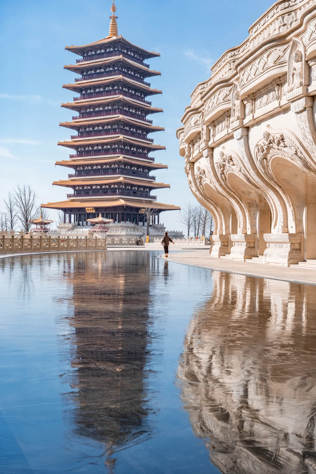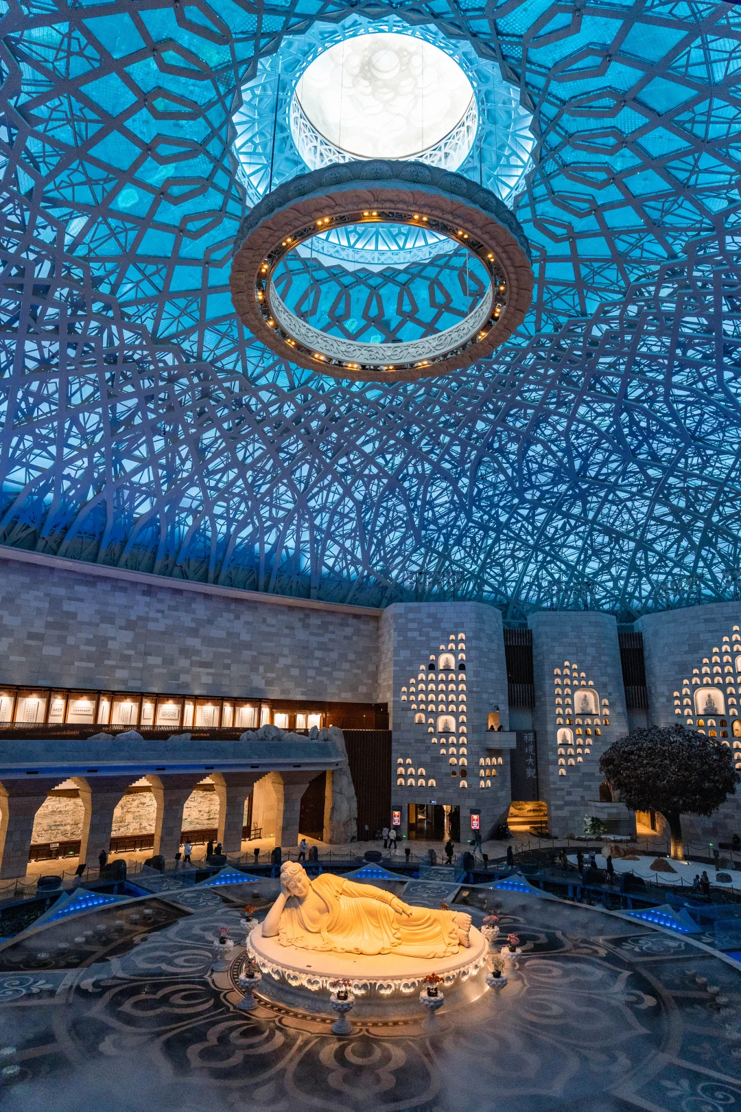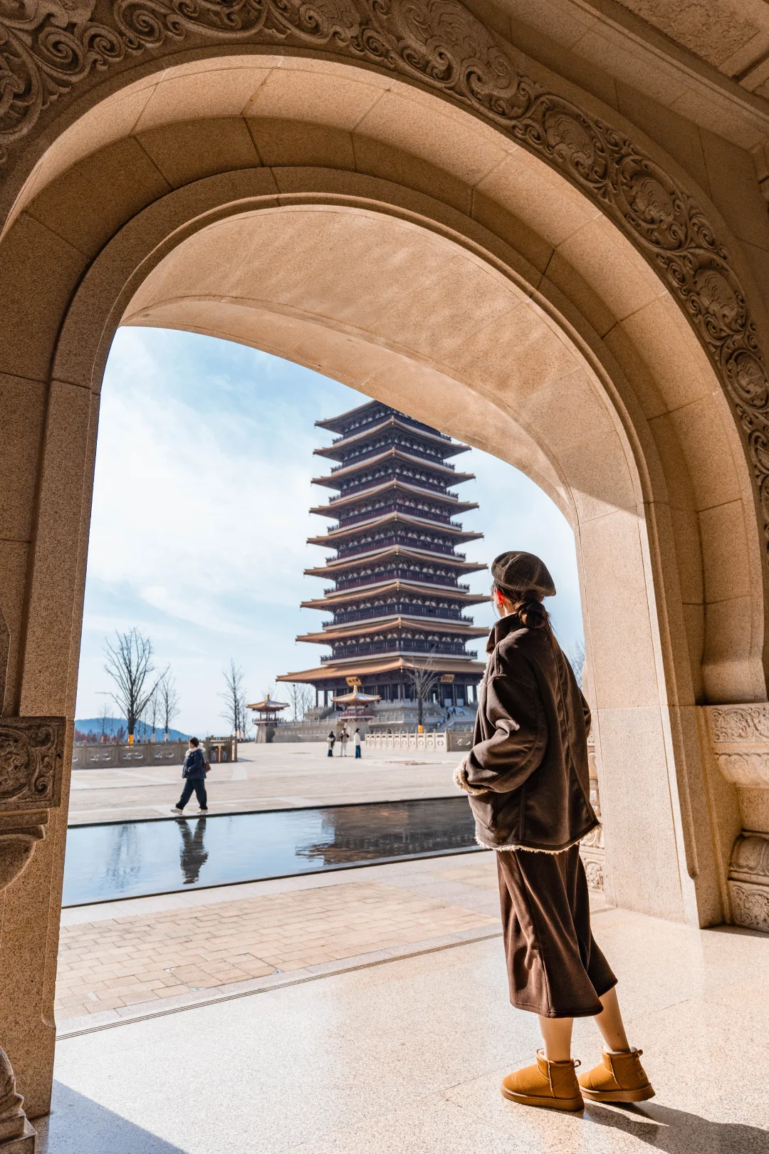 在牛首山山顶,可以徒步爬上去也可以坐景区交通车上去,佛顶宫外围拍倒影,内部连廊拍光影,地面层的禅境大观拍卧佛,地下层地宫拍舍利大殿,这里真的绝美!