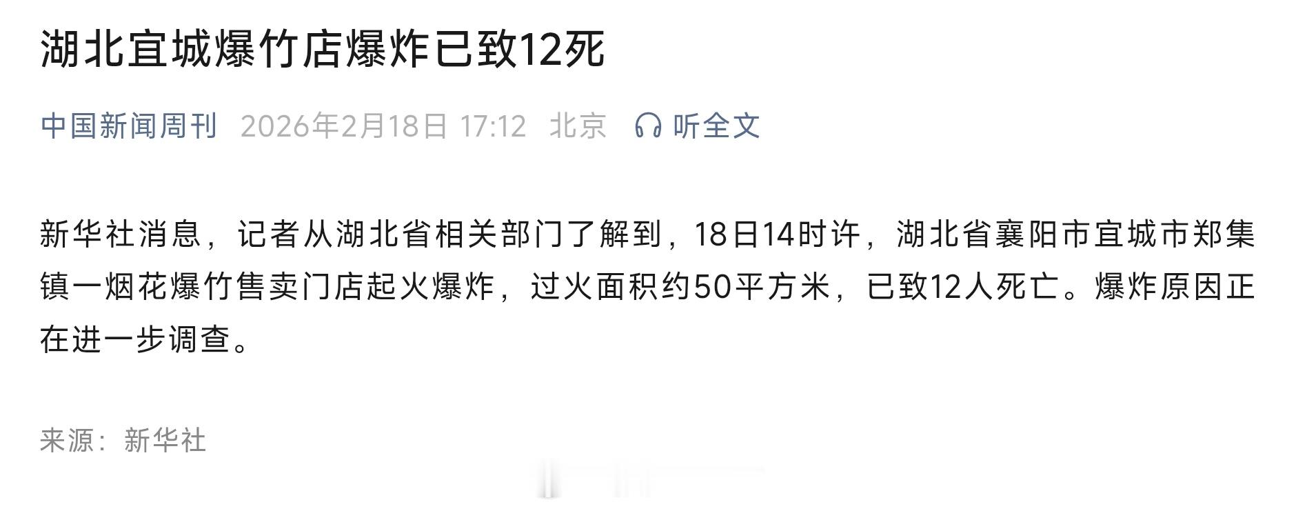 完蛋湖北宜城烟花爆竹爆炸已致12死