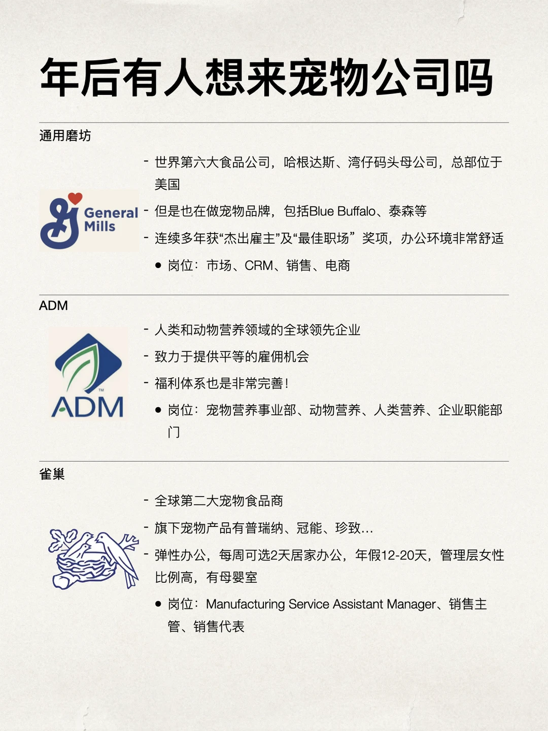 宠物赛道这几年真的越来越香、越来越稳,宠物食品、宠物医疗、宠物保健需求一直在涨 如果本身家里有毛孩子,或者本来就很喜欢宠物,这类公司会很有代入感。岗位像品牌、运营、电商、市场、销售都有机会 福利成熟、节奏不卷、年假长,很多公司实行弹性制,年假 15 天起、家庭友好政策、远程办公都很常见 坚持日更✊🏻,对外企感兴趣的欢迎常来看看