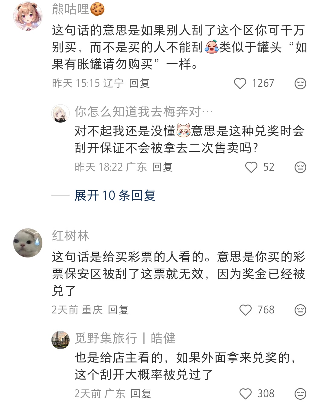 保安区刮开无效不是不能刮,而是让顾客买的时候,看到保安区被刮开的票不能买。因为刮开保安区就能直接扫描兑奖。怕客人买到被兑过奖的票。这句话原来是提醒