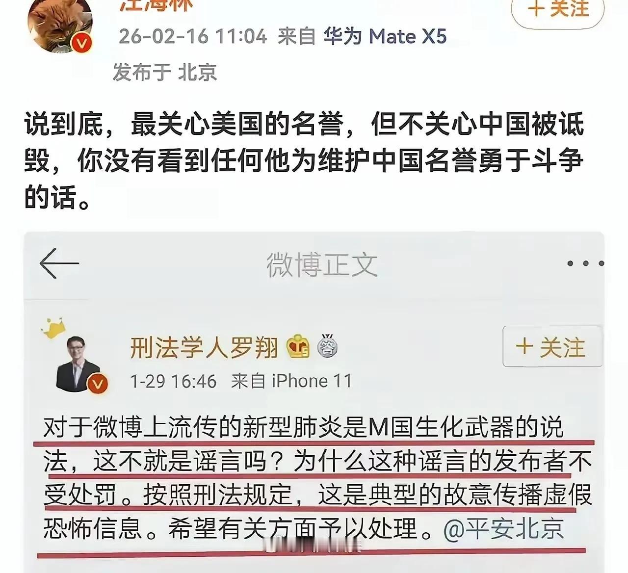 汪海林:罗翔只护美国,为啥不维护中国? 著名编剧2月16日发文,直指罗翔双标。说他是"美国名誉卫士",却从未见为中国名誉斗争。刑法老师的立场,成了舆论靶子。 即使退网了也逃不过,旧话被翻出来鞭挞。即便沉默,网友没忘。以前说过的"严重双标"言论,逐条拆解。曾经有多崇拜,现在就有多失望。信任崩塌,从翻旧账开始。 偶像德肖维茨塌房,罗翔三缄其口。精神导师多次上爱泼斯坦岛,丑闻炸裂。罗翔却装没看见,一句不吭。网友:你平时不是最爱谈正义吗?这时候正义感呢? 不是不肯认错,是没法认错。承认双标等于自毁人设,沉默是最后防线。但汪海林不给他机会:你不揭自己,我来揭。避免更多人被"法治之光"误导。 从相信到动摇,再到彻底崩塌。很多人曾把罗翔当启蒙老师,多年以后回头,发现倾向严重。不是学问问题,是立场问题。学问可以学,立场藏不住。 汪海林的狠:帮你揭穿,是最后的情分。不怪编剧毒舌,是罗翔自己把路走窄了。不肯认错,那就由别人代劳。真面目被揭,总比继续误导强。这是止损,也是警示。 汪海林对罗翔的讽刺,戳中了知识精英的信用危机:当"法治代言人"被证明只代言西方价值,当精神导师沦为爱泼斯坦岛常客,曾经的"启蒙"就变成了"误导"。罗翔的困境在于,双标指控有实锤,沉默是金却坐实心虚。网友从崇拜到鞭挞,不是因为人变了,是因为信息对称了——以前只看到他引经据典,现在看到他选择性地引。德肖维茨塌房时的三缄其口,是最后一根稻草。汪海林的揭穿看似狠,实则是替那些被误导过的人发声:信仰可以重建,但不能建立在沙滩上。罗翔若继续沉默,"法治之光"的招牌只会碎得更彻底。