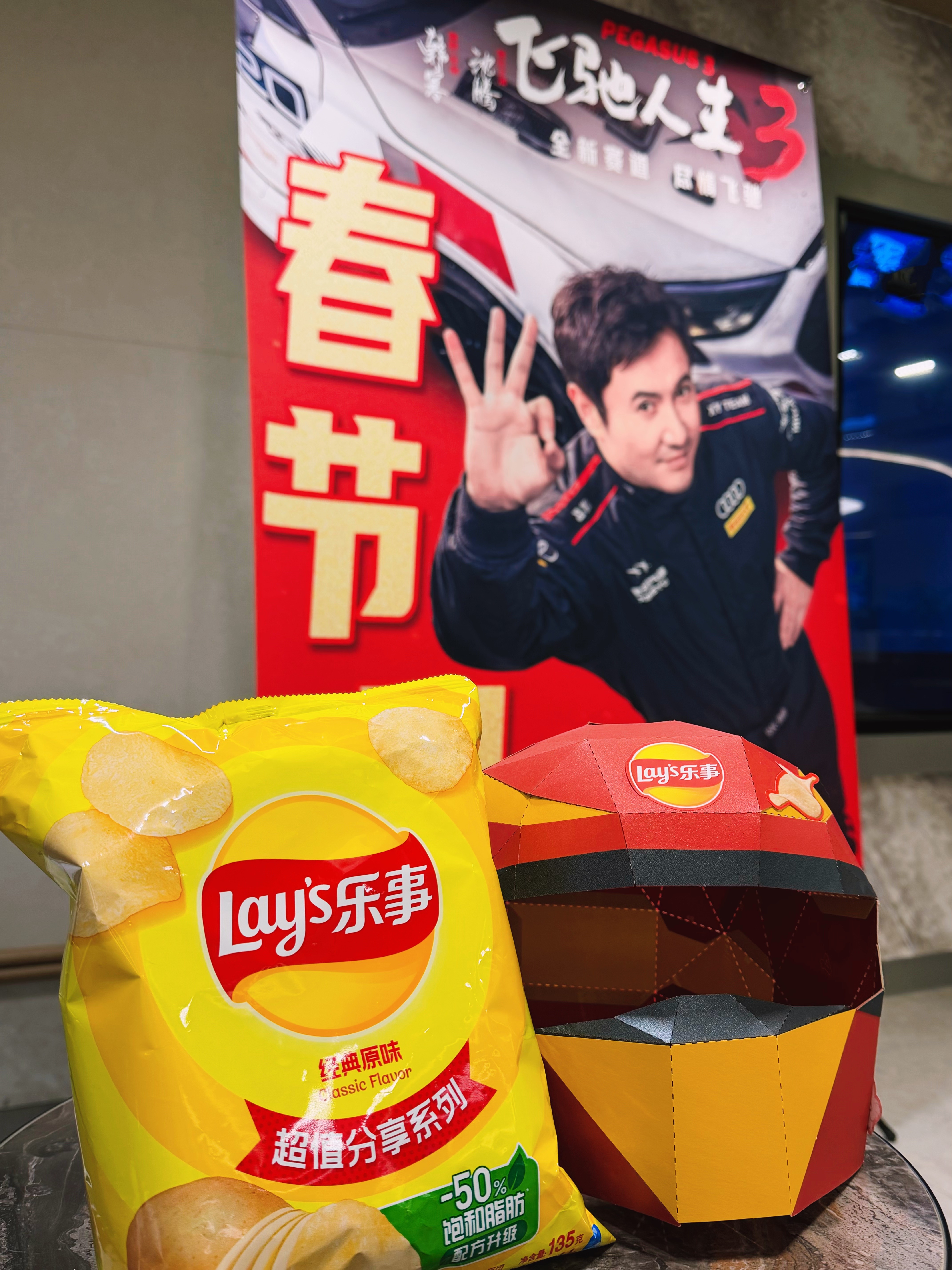 春节档冲《飞驰人生3》的家人们集合!影院里的引擎轰鸣声一响,手里的乐事薯片就是绝佳搭档!赛车时的热血漂移配着沈腾的幽默,笑到拍腿又燃到心头。春节看飞驰的快乐,一半是赛道狂飙给的,一半是乐事给的!吃乐事有乐事这话真的好像已经刻进DNA,春节看电影的仪式感就是揣着乐事薯片沉浸式追 电影飞驰人生3,大饱眼福又大饱口福。而且,不得不说一句,乐事和飞驰人生3的联名折纸头盔超有趣,戴着头盔来看电影怎么不算是一种特别的新春创意仪式感?这个春节边吃着乐事薯片边看飞驰3,这才是新年档的正确打开方式!让我们预祝票房一路飞驰!也祝大家的新年乐事可以飞驰起来!